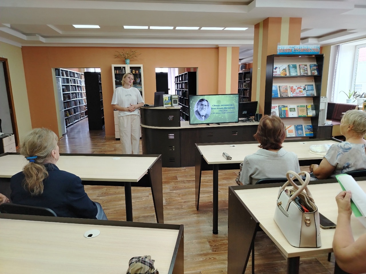 6 августа в отделе естественнонаучной и производственной литературы для участников клуба «Своя среда» состоялась информационная встреча «Этюды оптимизма», посвященная Илье Ильичу Мечникову. Библиотекари подготовили подробный рассказ о жизни, научных открытиях и философских трудах ученого с небольшой подборкой книг из фонда отдела – как самого ученого, так и написанных о нём.