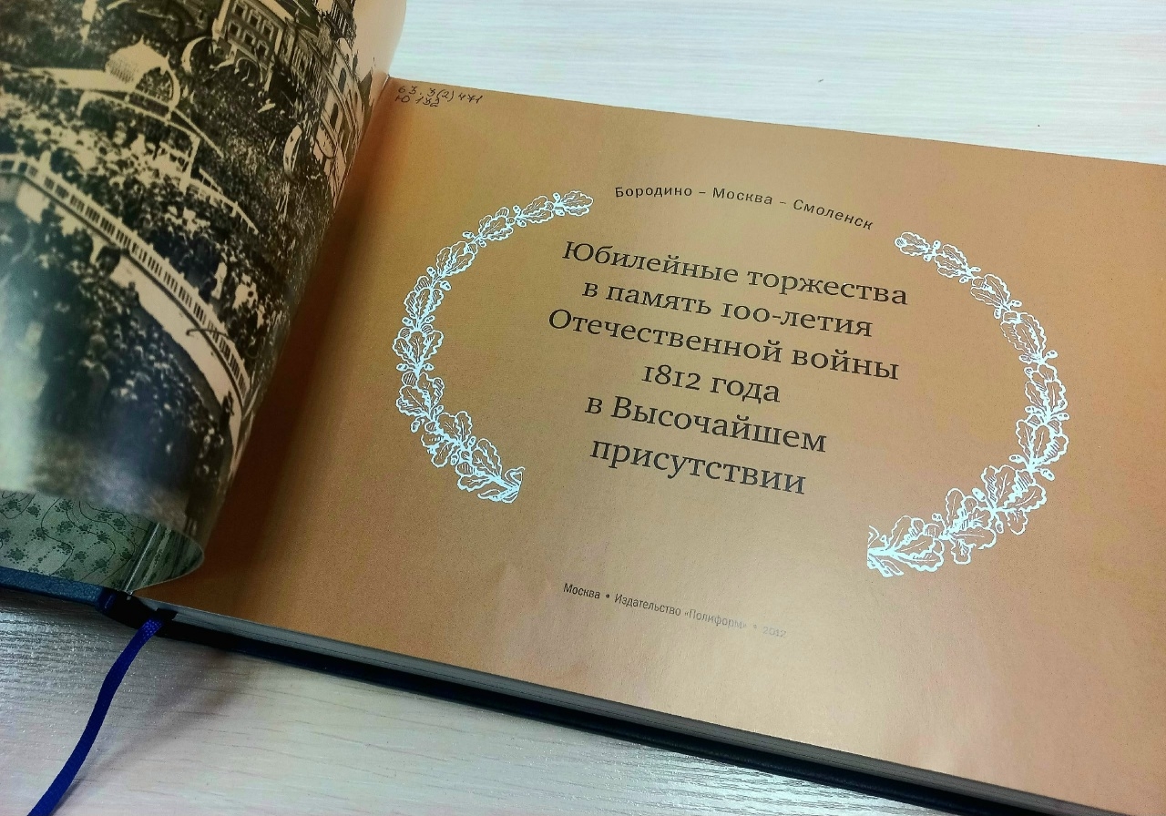 Юбилейные торжества в память 100-летия Отечественной войны 1812 года в высочайшем присутствии. Бородино. Москва. Смоленск : альбом. – Москва : Полиформ, 2012. – 320 с.