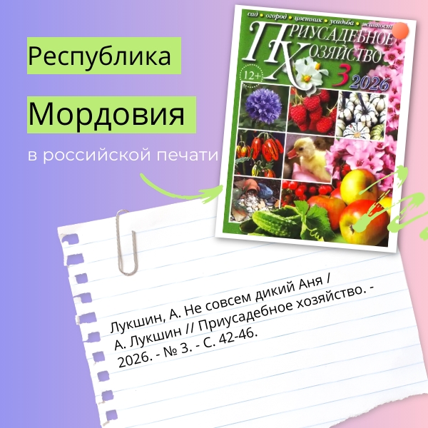В рамках проекта «Республика Мордовия в российской печати» отдел периодических изданий продолжает знакомить с публикациями о нашей республике, а также региональных авторов, размещенными на страницах федеральных изданий.