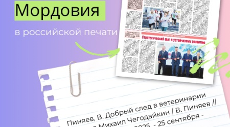 В газете «Сельская жизнь» (№ 37 / 2025) вышла статья В. Пиняева «Добрый след в ветеринарии оставил Михаил Чегодайкин», повествующая о судьбе ветврача, вся жизнь которого стала примером преданности профессии и родной земле. Это история о том, как талантливого специалиста Михаила Чегодайкина пригласили в племсовхоз «Россия». Первый рабочий день ветеринара начался со спасения теленка, а за годы практики он провел десятки сложнейших операций. Публикация раскрывает не только профессиональный путь, но и историю семьи, верности долгу и удивительную силу духа – даже серьезная болезнь не сломила Михаила Михайловича, и он продолжал трудиться на благо сельского хозяйства Мордовии.