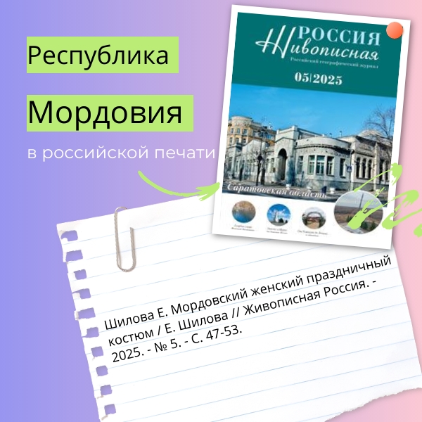 Углубиться в детали и узнать больше о костюме можно в статье Елены Шиловой «Мордовский женский праздничный костюм». Материал опубликован в журнале «Живописная Россия» № 5 за 2025 год.