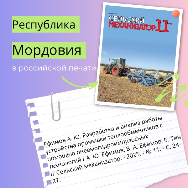 Проблема загрязнения теплообменников (ТО) – одна из наиболее актуальных для промышленной и сельскохозяйственной отраслей. Любые отложения (минеральная накипь, продукты коррозии, биологические образования или органические пленки), образующиеся на внутренних поверхностях ТО, снижают эффективность теплопередачи, затрудняют циркуляцию теплоносителя и вызывают рост гидравлического сопротивления. В результате оборудование работает с повышенной нагрузкой, возрастает энергопотребление, а также увеличиваются эксплуатационные затраты. В статье «Разработка и анализ работы устройства промывки теплообменников с помощью пневмогидроимпульсных технологий» авторами А. Ю. Ефимовым, В. А. Ефимовым и Бянь Тином представлена экспериментальная установка и последующий анализ в программном комплексе COMSOL Multiphysics на определение оптимального режима её работы. С данным материалом можно ознакомиться в журнале «Сельский механизатор» № 11 за 2025 год.
