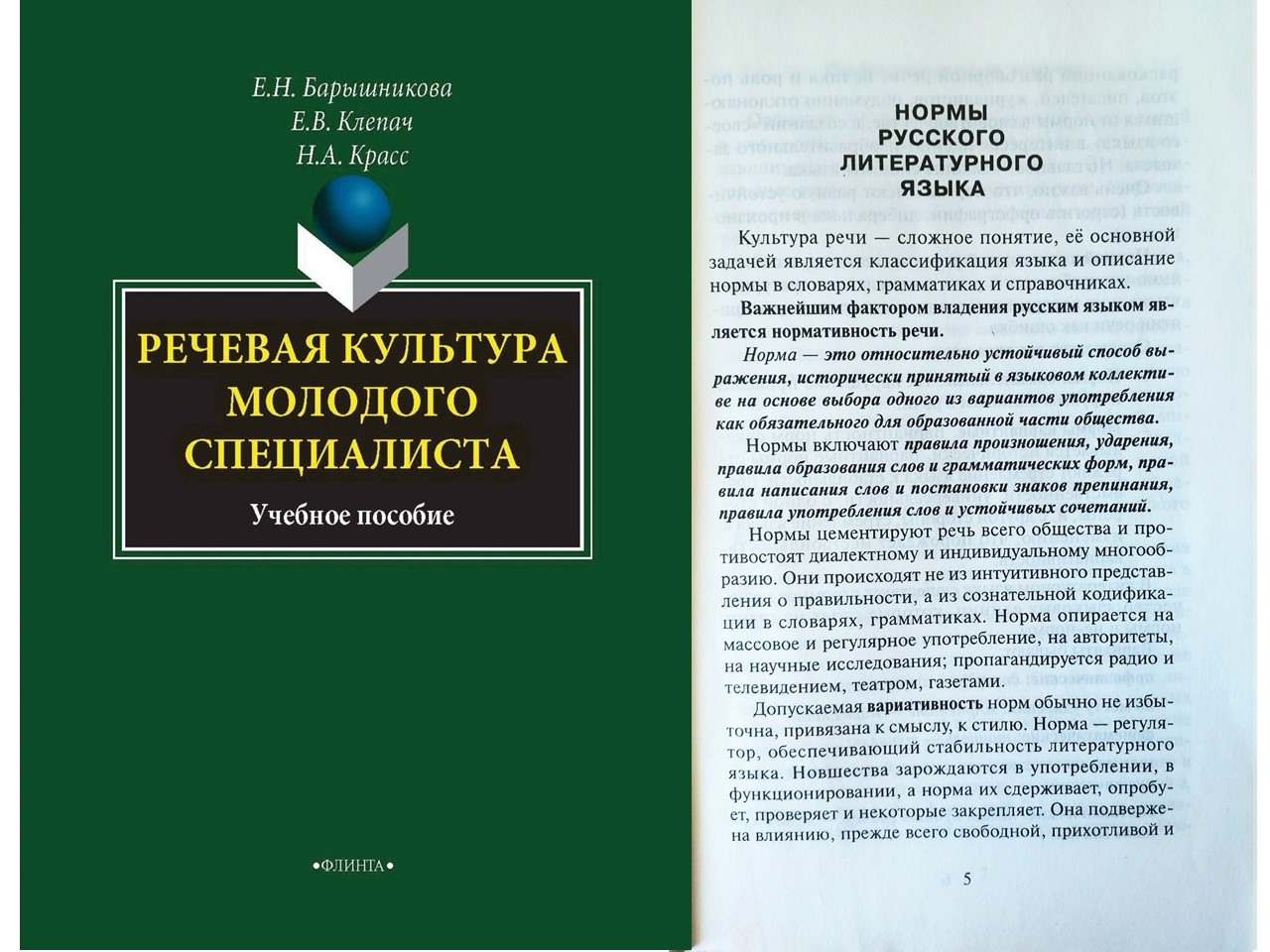 Интернет-проект «Слово русское»: Е. Н. Барышникова, Е. В. Клепач, Н. А. Красс «Речевая культура молодого специалиста»