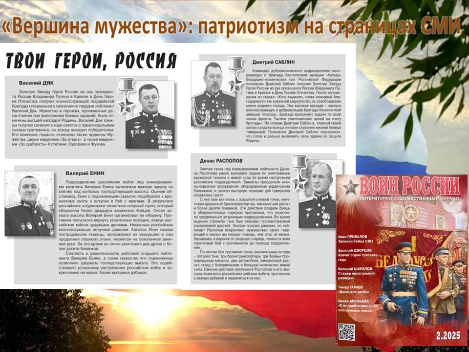 В рамках интернет-проекта «Вершина мужества» отдел периодических изданий подготовил подборку статей, которые познакомят читателей с информацией о подвигах наших солдат в СВО.