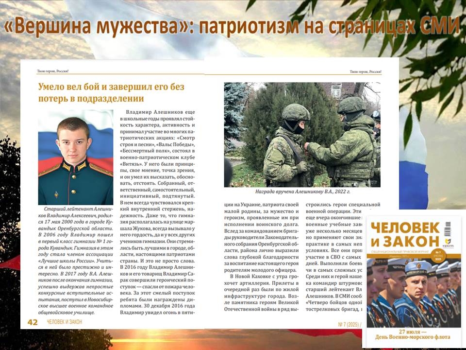 В рамках интернет-проекта «Вершина мужества» отдел периодических изданий подготовил подборку статей, которые познакомят читателей с информацией о подвигах наших солдат в СВО.