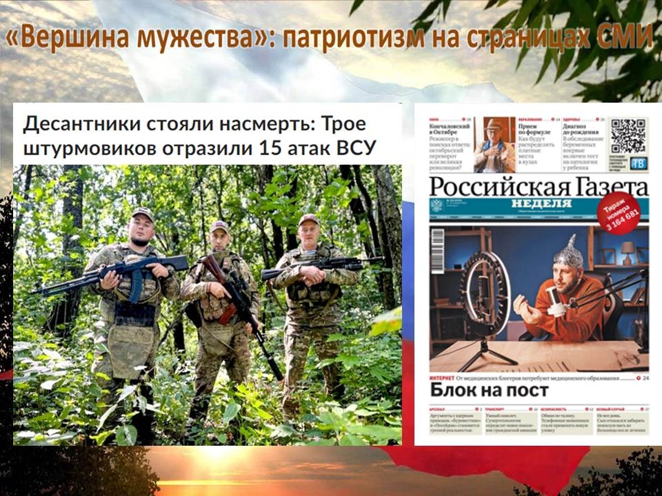 В рамках интернет-проекта «Вершина мужества» отдел периодических изданий подготовил подборку статей, которые познакомят читателей с информацией о подвигах наших солдат в СВО. Предлагаем ознакомиться с материалами из «Российской газеты».