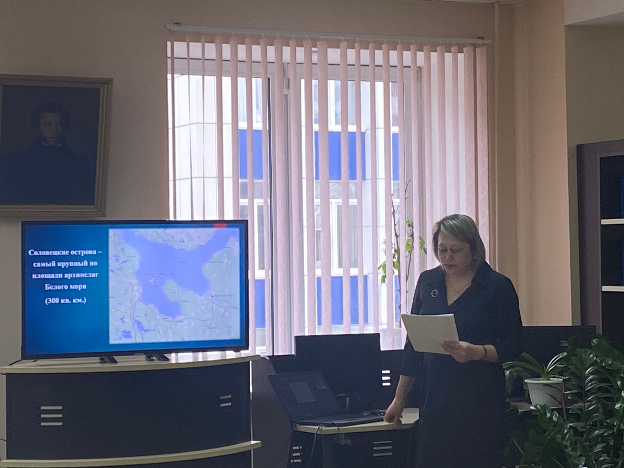 Во исполнение Указа Президента Российской Федерации от 19 октября 2023 «О праздновании 600-летия основания первого монашеского поселения на Соловецком архипелаге» сотрудники отдела информационно-библиографического обслуживания для студентов Саранского государственного промышленно-экономического колледжа провели исторический час «История Соловецкой обители».