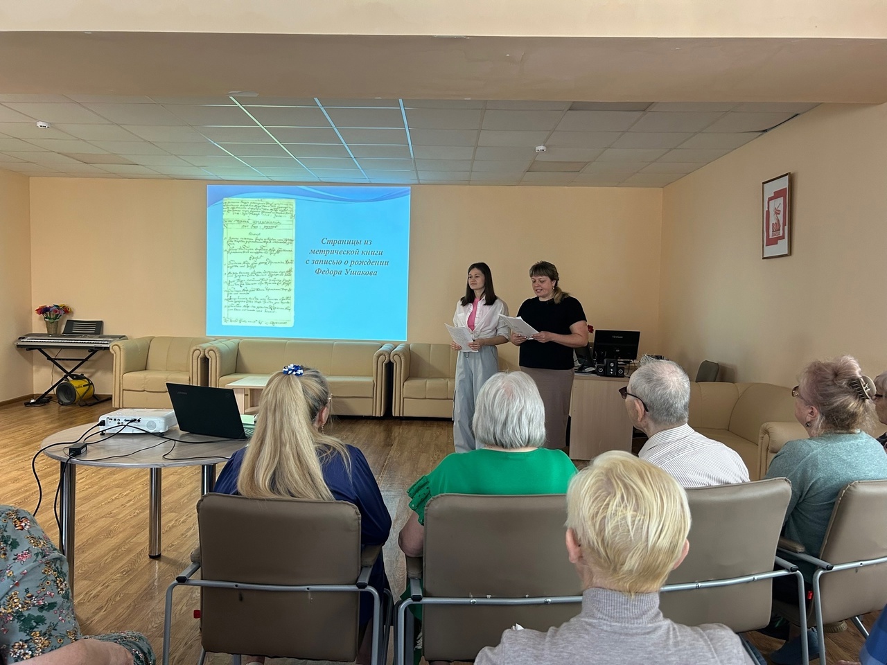 К 280-летию со дня рождения флотоводца и в рамках Года защитника Отечества для подопечных Комплексного центра социального обслуживания по г. о. Саранск 5 мая сотрудники отдела абонемента Пушкинки провели исторический час «Славное имя России: Федор Ушаков».