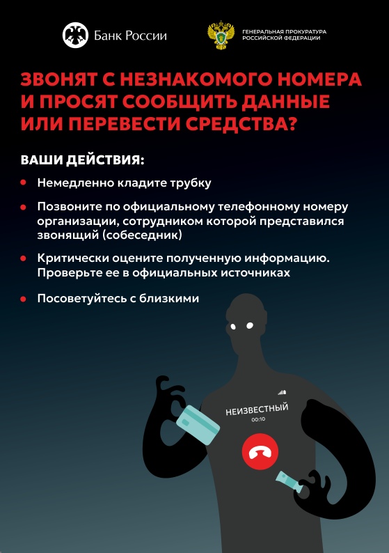 •если звонок вызывает подозрения, завершить разговор и связаться с банком или организацией самостоятельно по официальным каналам связи.