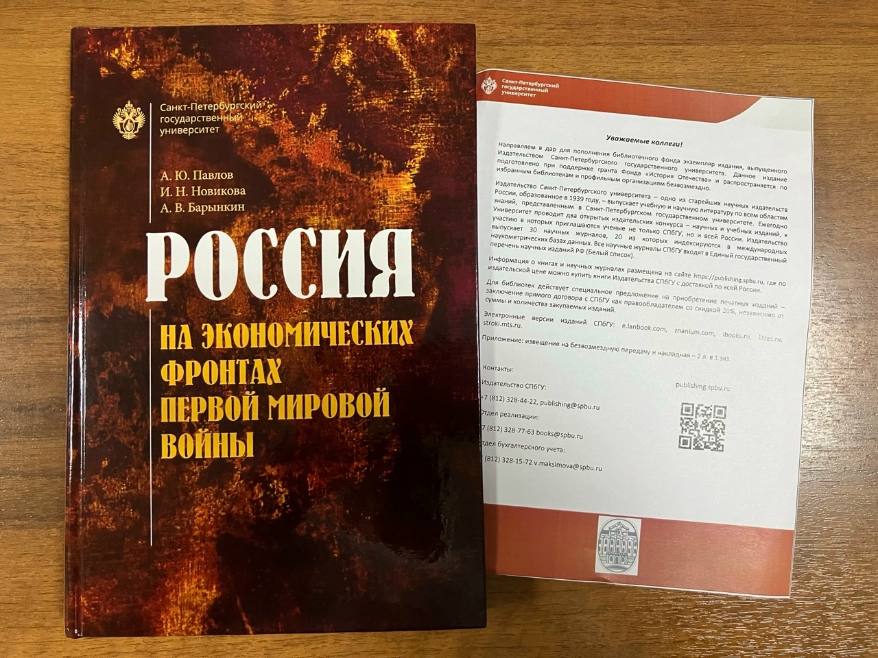 В коллективной монографии «Россия на экономических фронтах Первой мировой войны» (г. Санкт-Петербург, 2025 г.), выпущенной в Издательстве СПбГУ при поддержке Вольного экономического общества России и фонда «История Отечества», исследованы экономические аспекты военного противоборства Антанты и блока Центральных держав в годы Первой мировой войны. Чтобы показать роль России в усилиях союзников по экономическому воздействию на противника, авторы рассматривают инструментарии экономической войны во внутренней и внешней политике России, анализируют стратегии её ведения. Особое внимание уделяется проблемам организации союзнического транзита военных и гражданских материалов через Швецию. Впервые дается комплексная оценка эффективности использования Россией разных форм и методов экономической войны для достижения целей в борьбе с противником.