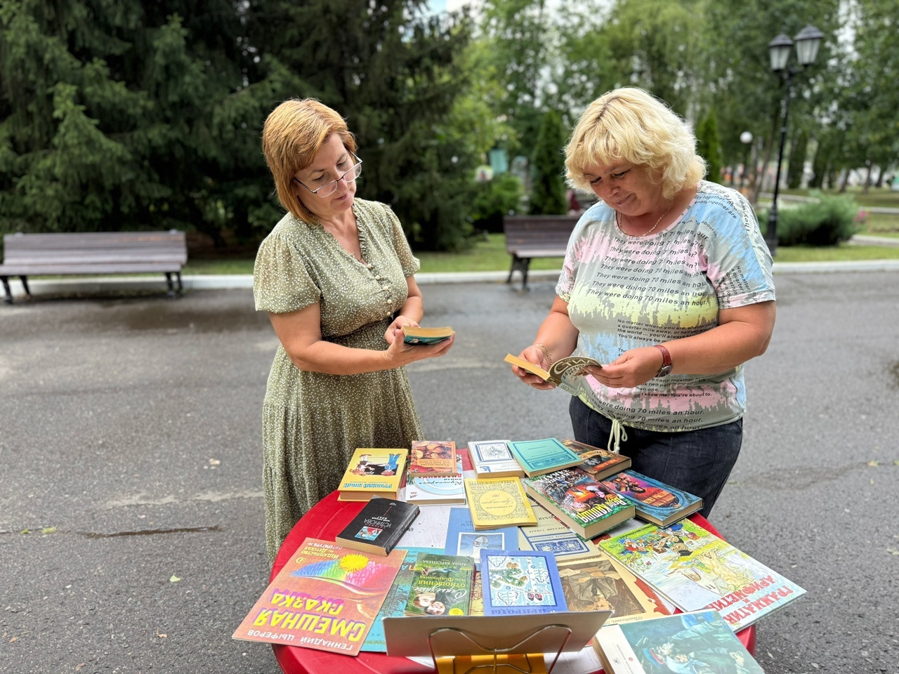 На протяжении всего мероприятия площадка жила активной жизнью: книги переходили из рук в руки, открывались новые имена, а прочитанные произведения становились предметом оживленных дискуссий. Царила атмосфера непринужденного общения, где каждый мог поделиться своими впечатлениями, посоветовать интересную книгу или просто поговорить о любимых писателях.