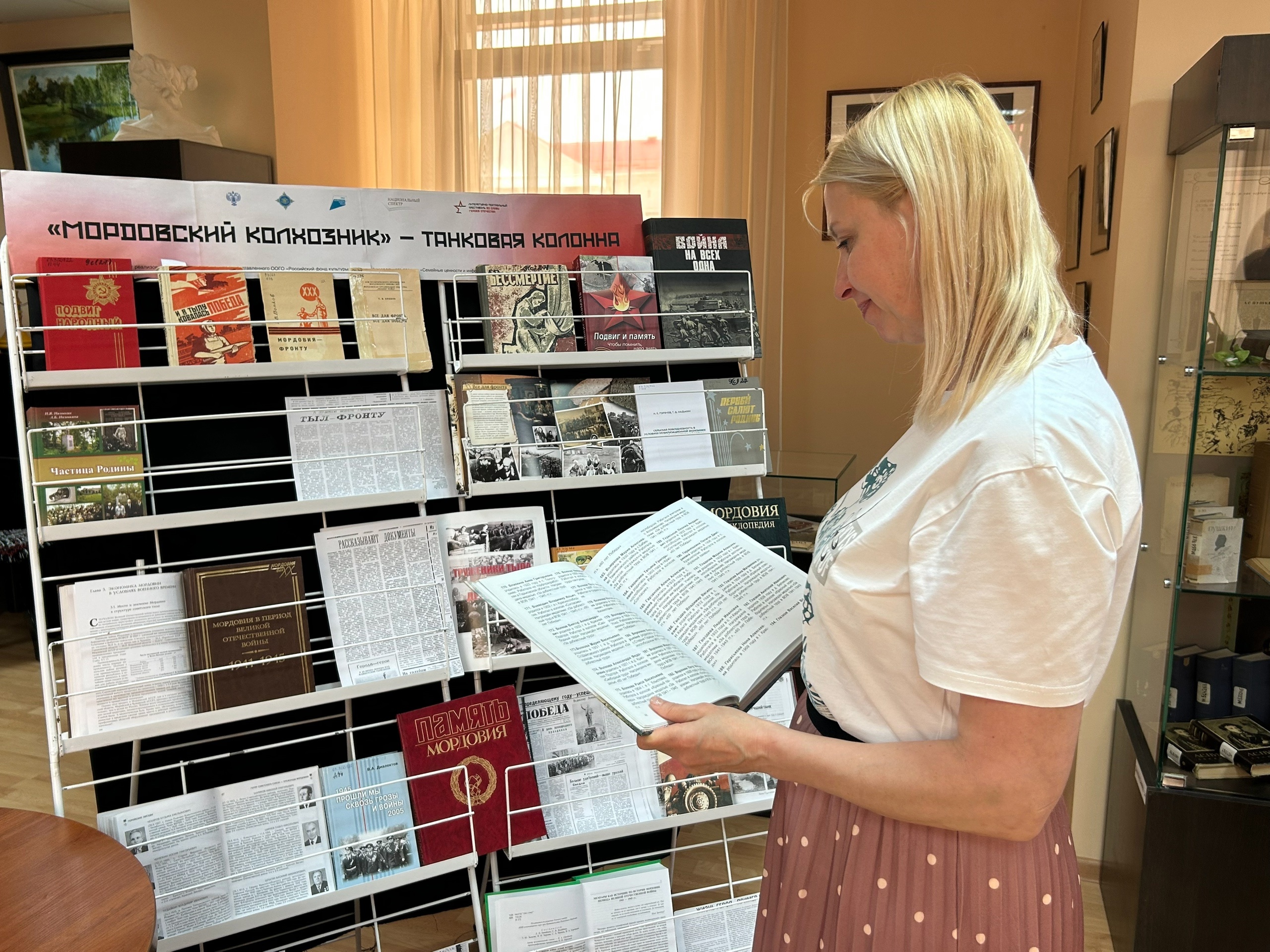 К данному мероприятию был оформлен одноименный книжный стеллаж, на котором собран научно-исторический, методический материал об истории создания в годы Великой Отечественной войны танковой колонны «Мордовский колхозник» в Ромодановском районе с. Курилово. В сборниках статей и материалов, газетных и журнальных публикациях известных мордовских историков, краеведов представлены биографии, фотодокументы на данную тематику. Особое место на стеллаже занимают воспоминания председателя совета с. Курилово о танковой колонне, напечатанные в монографии «Война на всех одна».