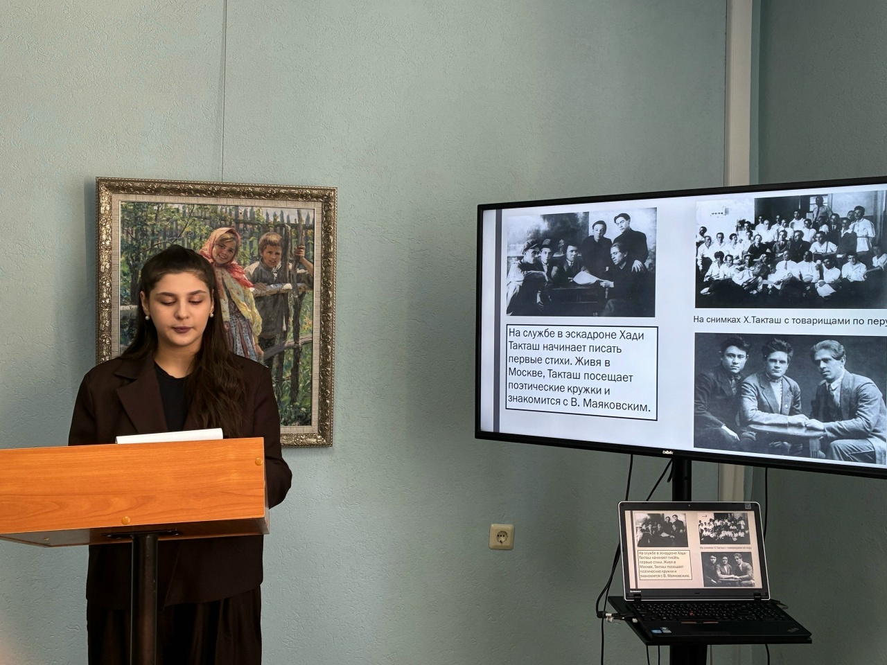 Ярким украшением мероприятия стало художественное чтение стихов Хади Такташа студентами филологического факультета. Национальную библиотеку Мордовии представляла библиотекарь сектора татарской литературы Алсу Тумпарова, в её исполнении прозвучала поэма Хади Такташа «Алсу» на татарском языке.