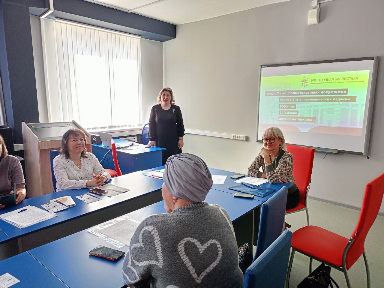 Наталья Викторовна познакомила педагогов республики с Электронной библиотекой Мордовии, разнообразными коллекциями, входящими в её состав, рассказала о возможностях использования представленного информационного материала в урочной и внеурочной деятельности, пригласила обучающихся на мероприятия, проводимые сотрудниками библиотеки по Пушкинской карте.