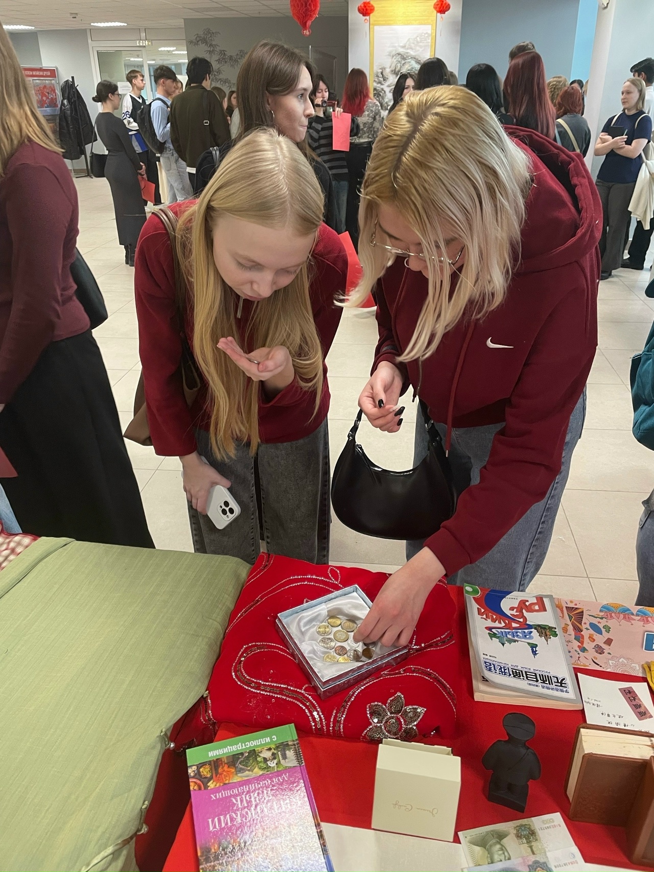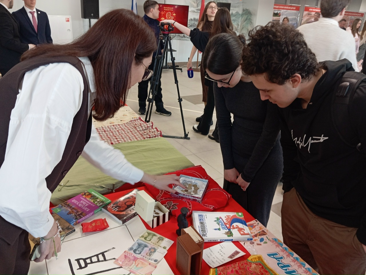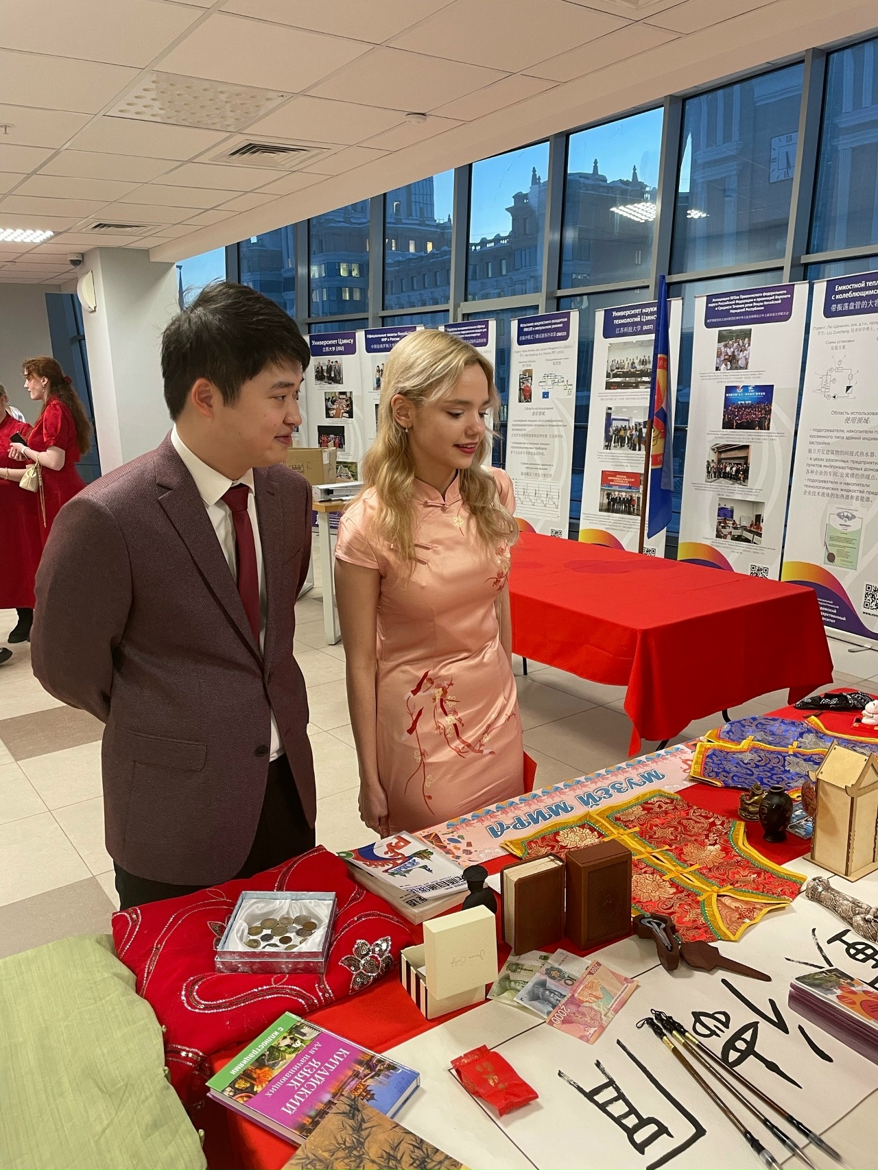 Библиотекари подготовили экспонаты, большей частью связанные с культурой Китая: пагода, пан-чанг, шелковые жилеты, национальная валюта, литература на языке оригинала, открытки. На выставке можно было ознакомиться и с другими, не менее интересными экземплярами, которые прибыли из разных уголков мира, чтобы находиться в единстве и содружестве.