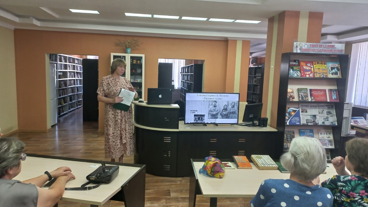9 июля сотрудники отдела естественнонаучной и производственной литературы на заседании клуба «Своя среда» открыли двери в «Таежную историю», посвятив лекторий литературному наследию Василия Пескова. Рассказ лектора познакомил клубовцев с жизнью и творчеством журналиста-легенды, чье имя стало синонимом проникновенной фотографии, неутолимой жажды путешествий и искренности телеэкрана.
