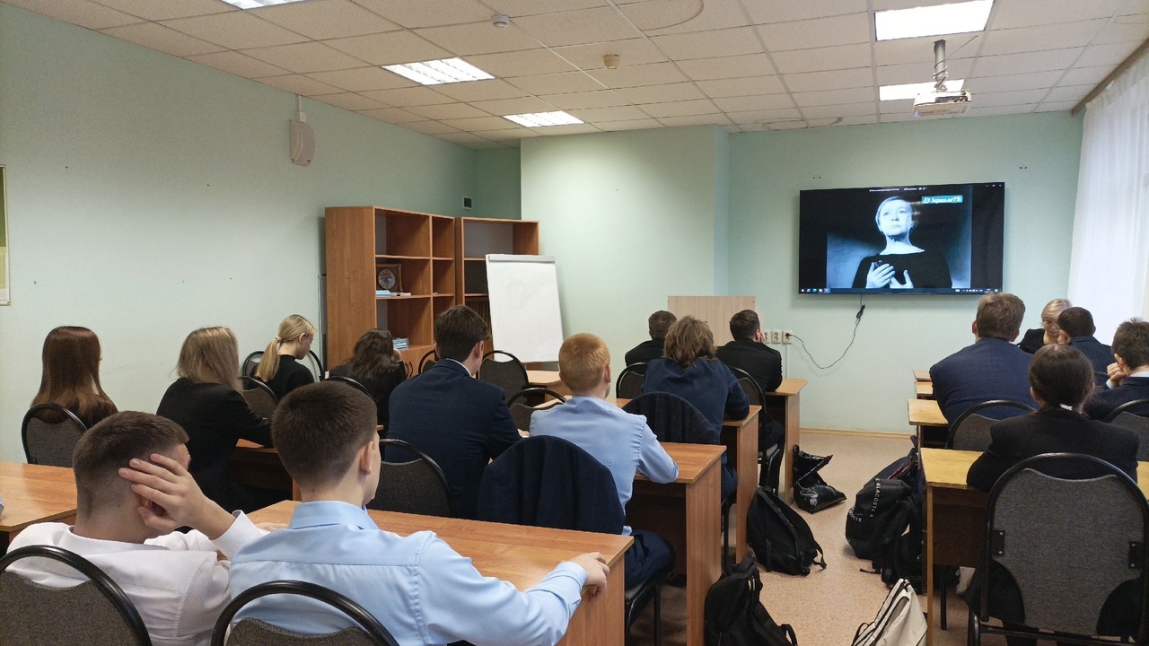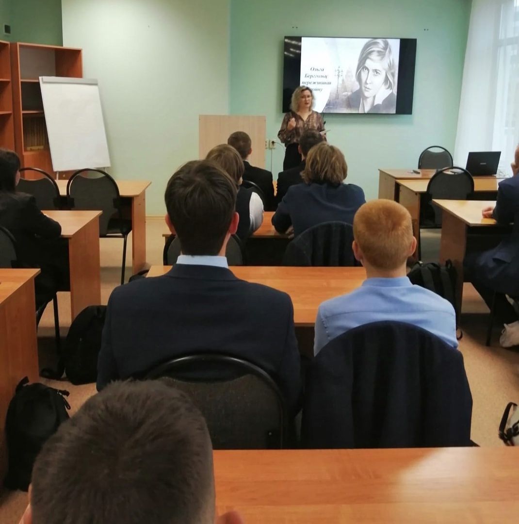 Ребята с большим интересом узнали о сложной судьбе блокадной поэтессы, познакомились с её творчеством, с героической борьбой за выживание в осажденном городе. Беседа о самом трагическом событии в нашей истории сопровождалась презентацией и кадрами из документального фильма.