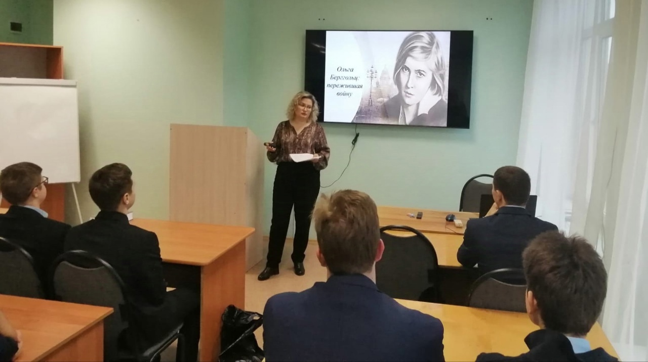 Великая Отечественная война 1941–1945 гг. стала неизбежной и главной темой русских писателей и поэтов. Летопись, стихи, записи дневников, сами произведения наших соотечественников дают нам уникальную возможность посмотреть на мир и на исторические события их глазами. 22 января учащиеся школы № 40 познакомились с биографией и творчеством очень сильной, мужественной женщины, советской поэтессы, имя которой навсегда связано с блокадным Ленинградом, – Ольги Фёдоровны Берггольц.
