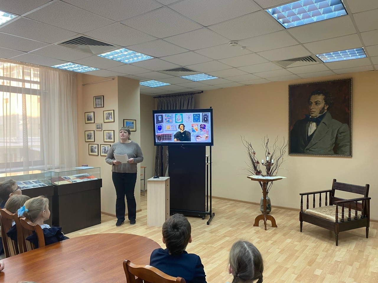 10 февраля сотрудники отдела абонемента пригласили учеников младших классов школы № 11 на литературную гостиную «Живое пушкинское слово». Ребята окунулись в историю жизни знаменитого поэта, услышали занимательные истории из его биографии, приняли участие в интерактивной игре-викторине, посвященной наследию Пушкина, а также насладились просмотром анимационных фильмов, снятых по мотивам его произведений.