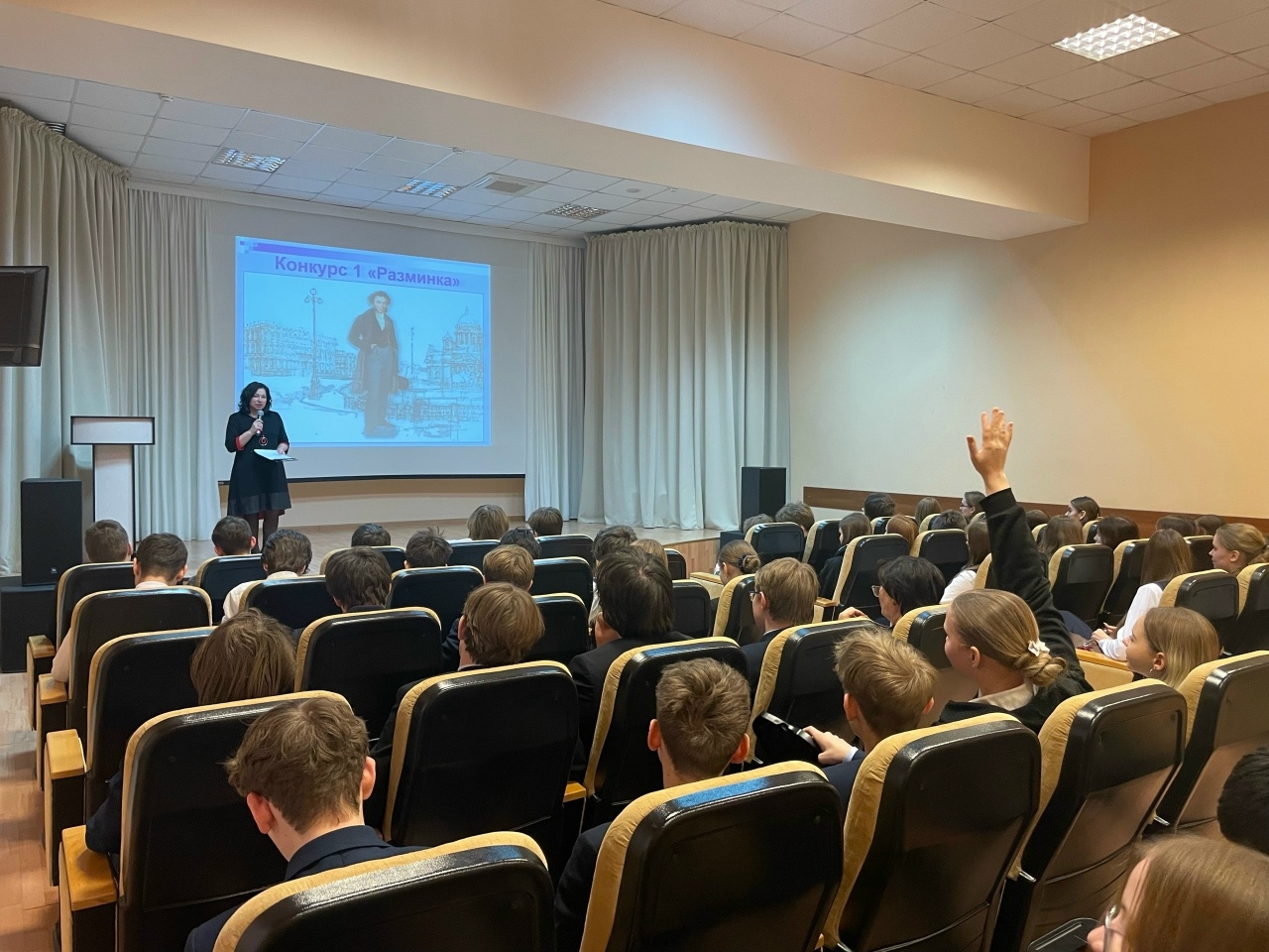 Затем школьники отправились в увлекательное путешествие по миру его произведений – в этом им помогла интерактивная игра «Наш Пушкин». Ребят ждал настоящий литературный вызов: не только угадать по первым строчкам известные произведения и вспомнить их названия, но и зачитать наизусть отрывки, отгадать ребусы и филворд. Было видно, что ребята действительно знают книги Александра Сергеевича и им не составляет труда ответить на вопросы.