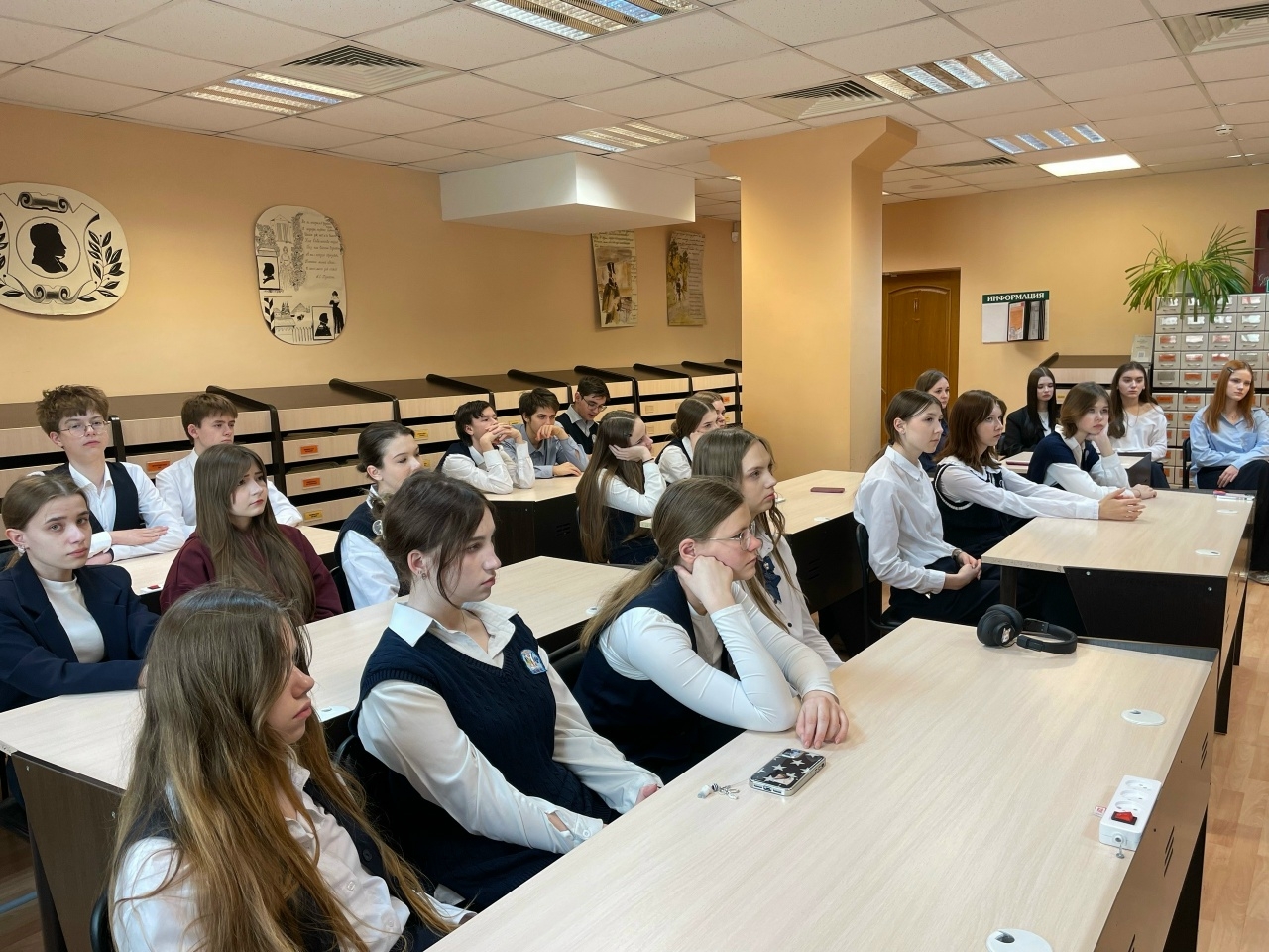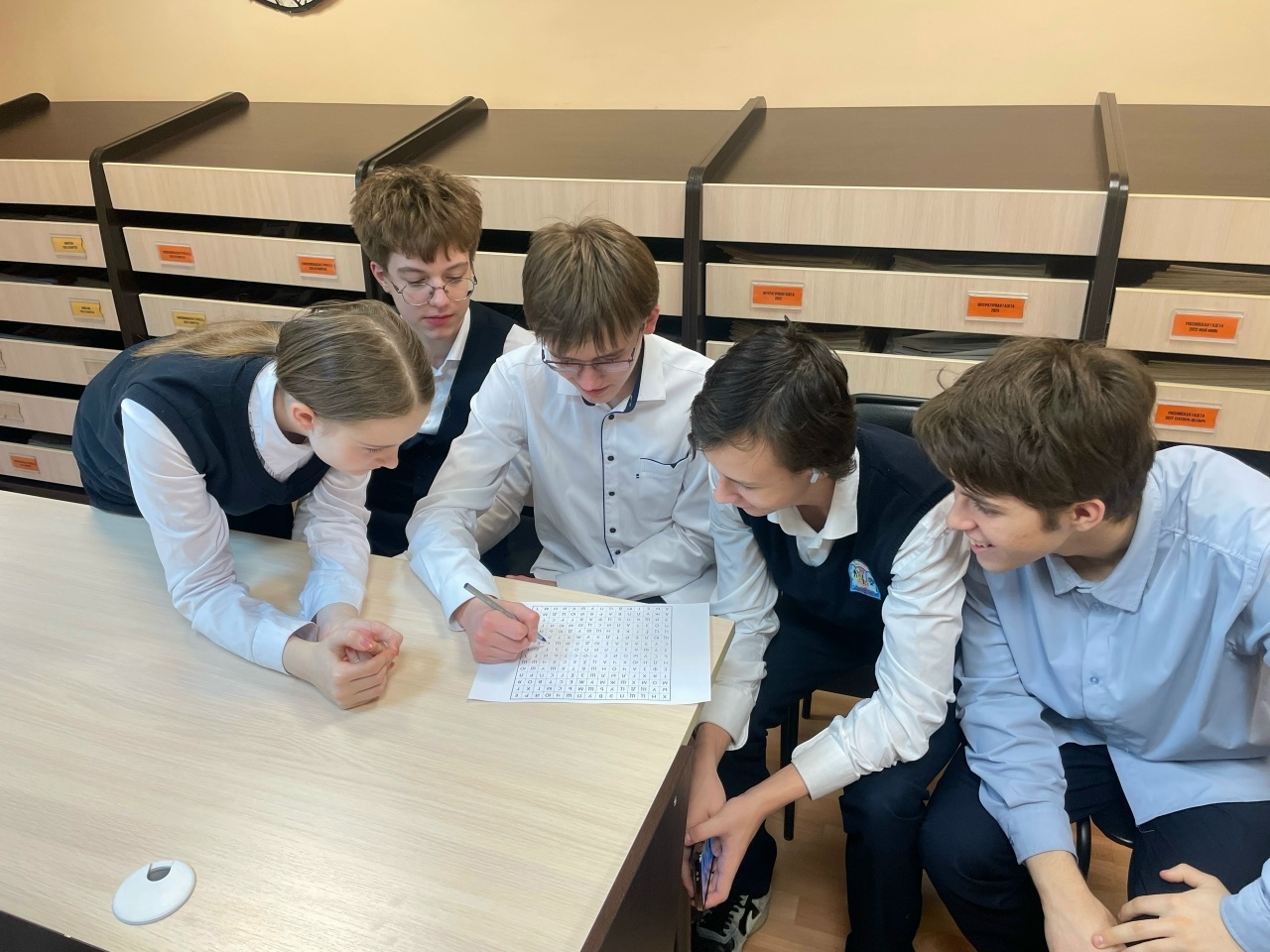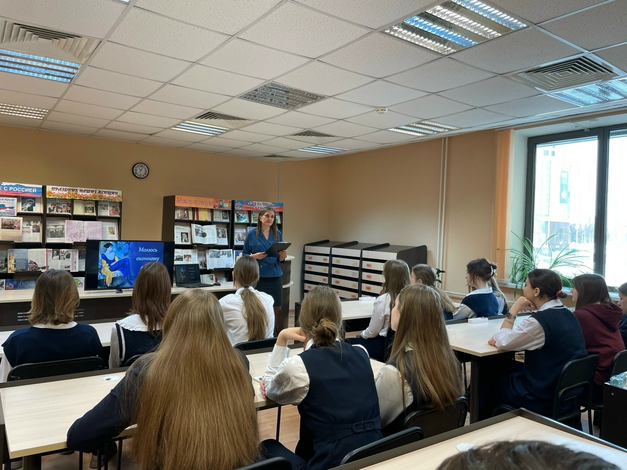 19 марта сотрудники отдела периодических изданий в рамках цикла познавательных встреч «Созвездие имен великих» провели для учащихся школы № 39 литературный час «Молюсь оконному лучу…». В ходе встречи школьники погрузились в мир поэзии Ахматовой, познакомились с её судьбой и творческим наследием, а также поучаствовали в литературном состязании «По страницам жизни и творчества Ахматовой», проявив смекалку и творческие способности. За звание самой читающей и креативной команды боролись три группы ребят, которым предстояло пройти пять раундов: «Найди пару», «Правда или ложь», «Литературный филворд», «Картинная галерея» и «Народный артист».