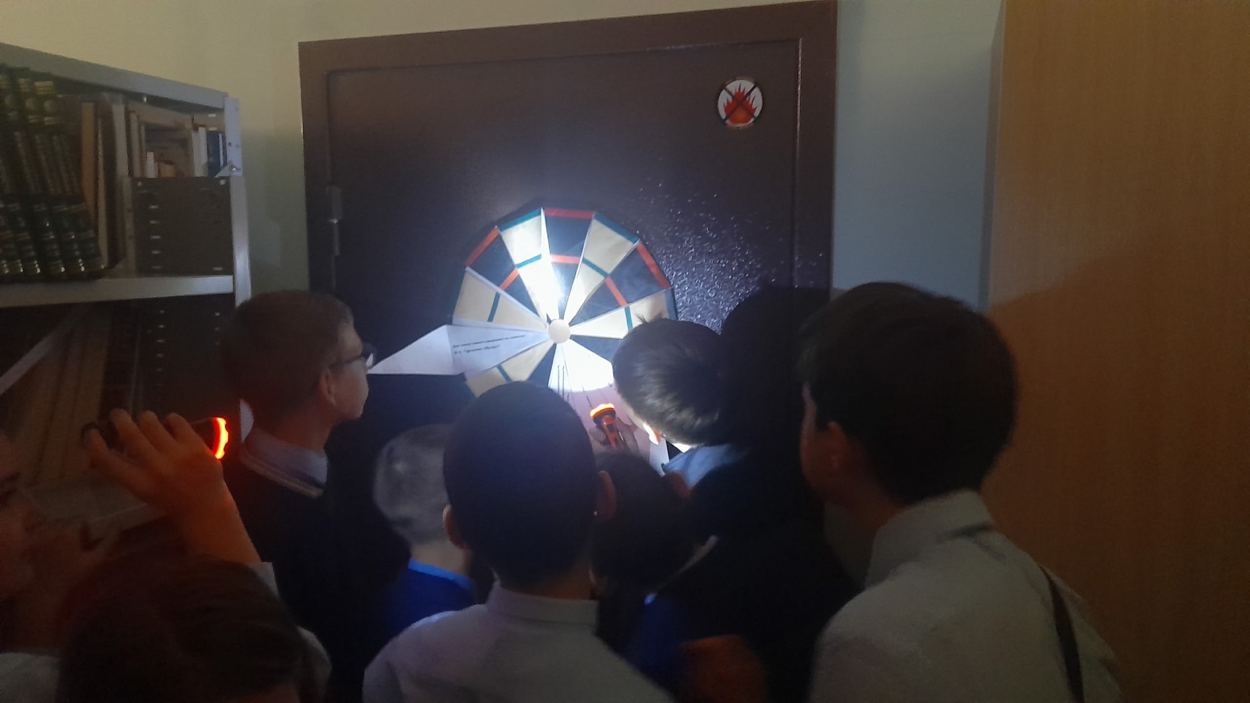 В заключение ребята участвовали в квесте «За семью замками». По сценарию ребята оказались закрытыми в комнате. На то, чтобы найти выход, у них было всего 60 минут. В поиске ключа от двери они решали логические задания, выполняли поиск необходимой информации, используя каталог библиотеки, отгадывали кроссворды, литературные ребусы, учились работать с информационными ресурсами. Кроме того, школьники получили уникальную возможность побывать в фонде отдела и сыграть в книжные шашки.
