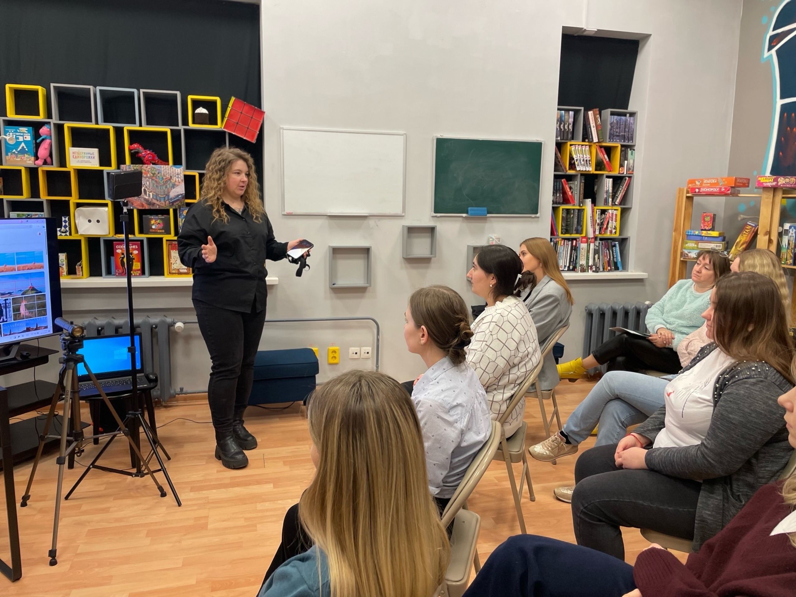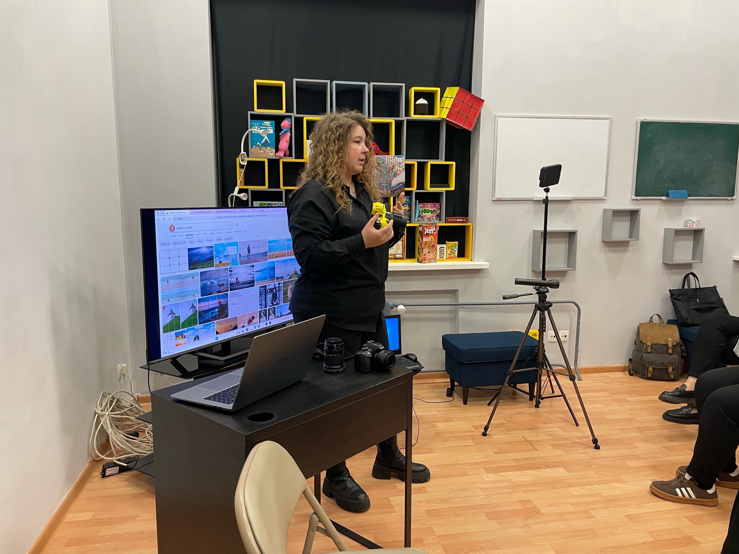 Гостьей мероприятия выступила профессиональный фотограф Наталья Носова, которая провела для участников мастер-класс по фотосъемке мероприятий. В рамках занятия были рассмотрены следующие аспекты: