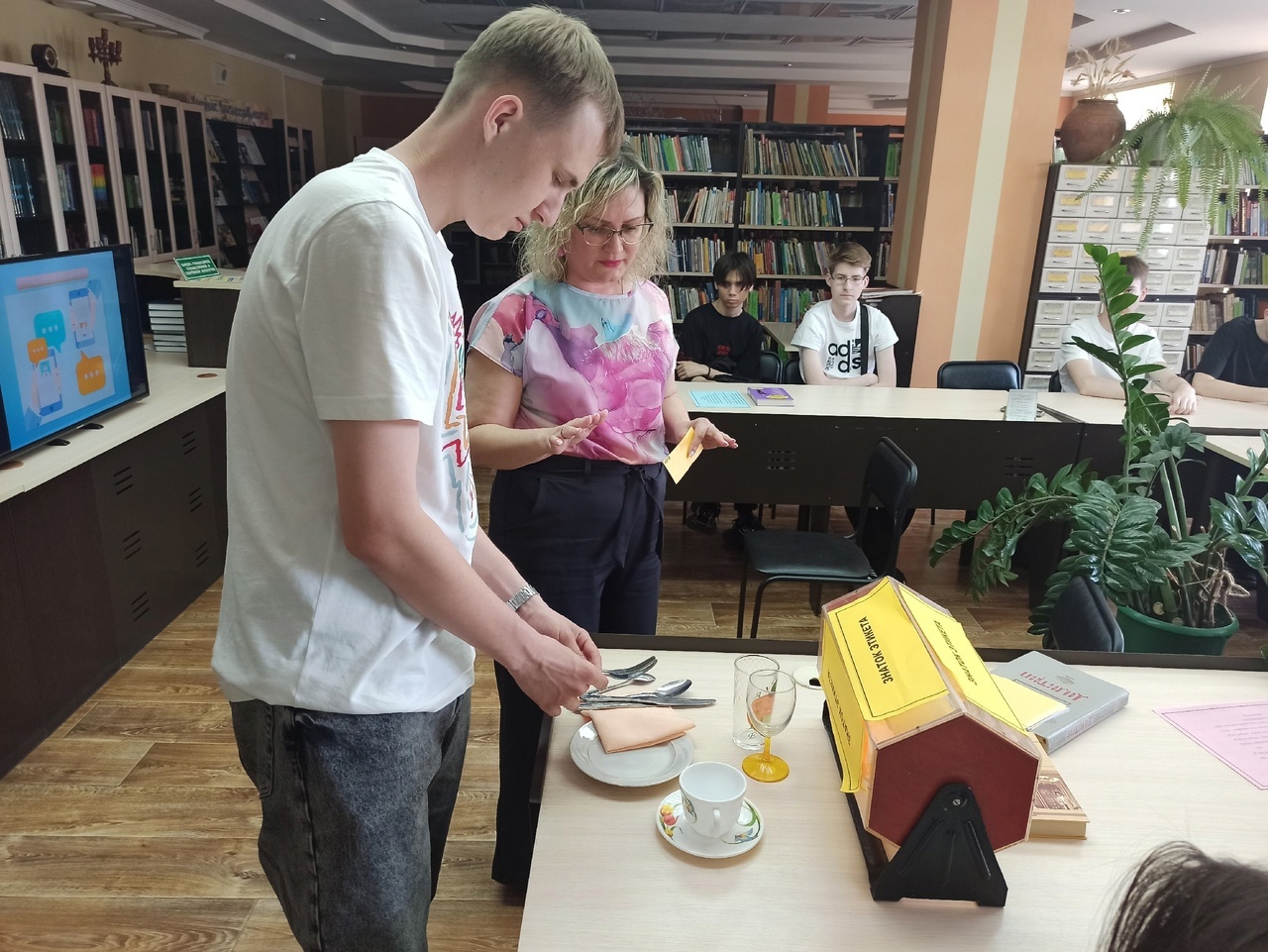 В заключение мероприятия ребята посмотрели небольшой фрагмент о вреде сквернословия для нашего организма и приняли активное участие в викторине «Знаток этикета». Студенты освоили сервировку стола и получили памятные призы от Пушкинки.