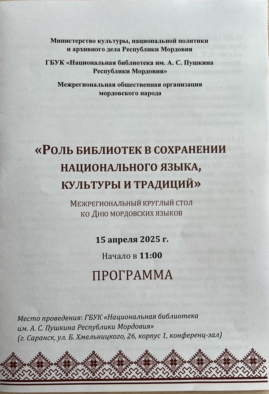 15 апреля в Пушкинке состоялся Межрегиональный круглый стол «Роль библиотек в сохранении национального языка, культуры и традиций», приуроченный к Всероссийскому дню мордовских языков.