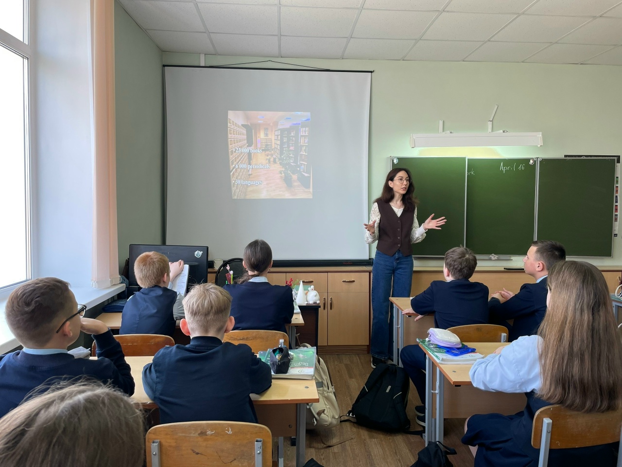 16 апреля сотрудники отдела литературы на иностранных языках Пушкинки в рамках клуба «Мир на ладони» провели для учащихся лицея № 4 интерактивную музыкальную игру, которая помогла ребятам вспомнить песни из мультфильмов разных лет, знакомые каждому с детства. Были композиции как на языке оригинала, так и в переводе, советские и зарубежные.