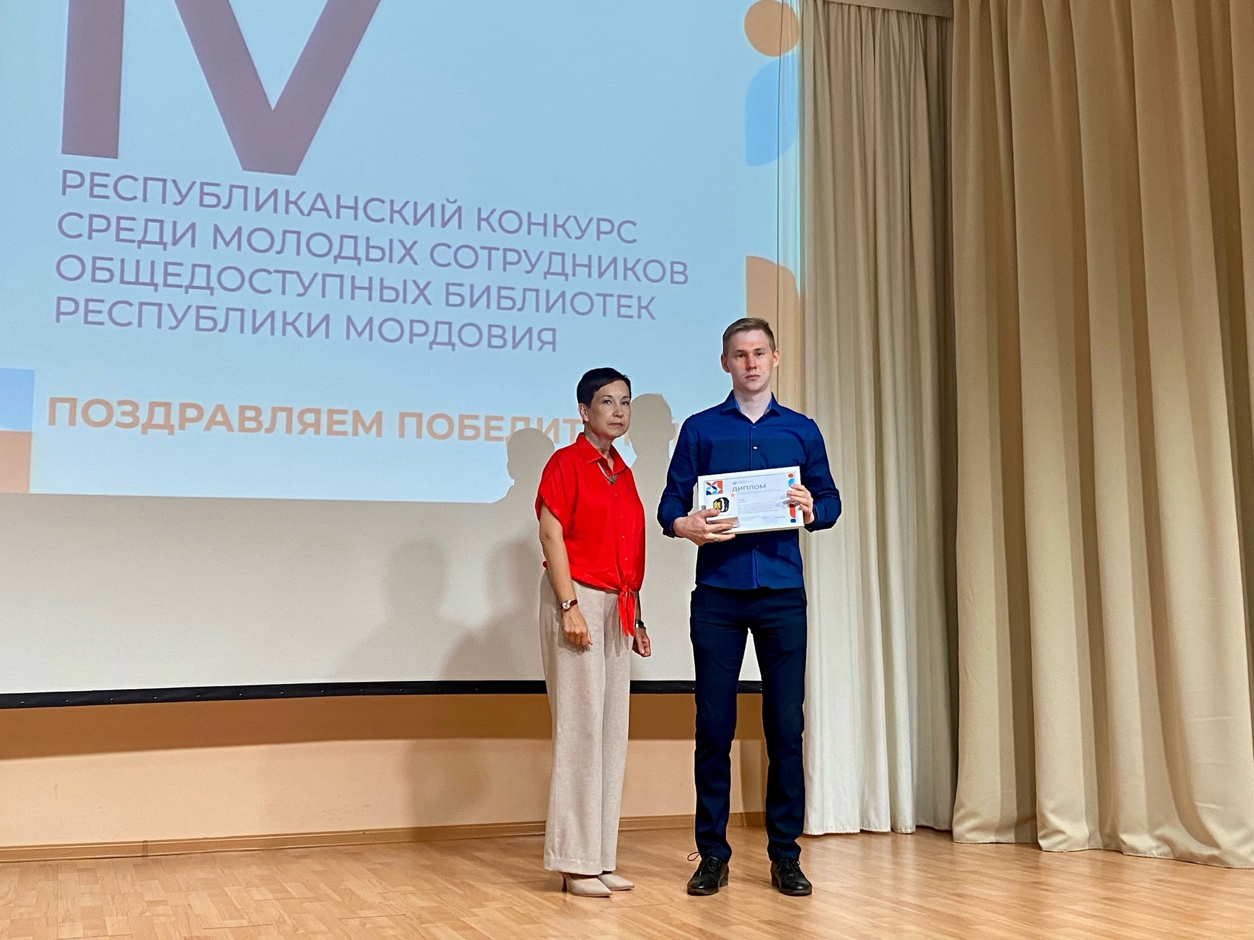 5 июня в Национальной библиотеке им. А. С. Пушкина Республики Мордовия прошло торжественное мероприятие, посвященное Общероссийскому дню библиотек. В рамках него состоялась церемония награждения победителей и призеров IV Республиканского конкурса среди молодых сотрудников общедоступных библиотек Республики Мордовия. Заместитель министра культуры, национальной политики и архивного дела Республики Мордовия Юлия Александровна Елисеева вручила им дипломы и ценные призы.