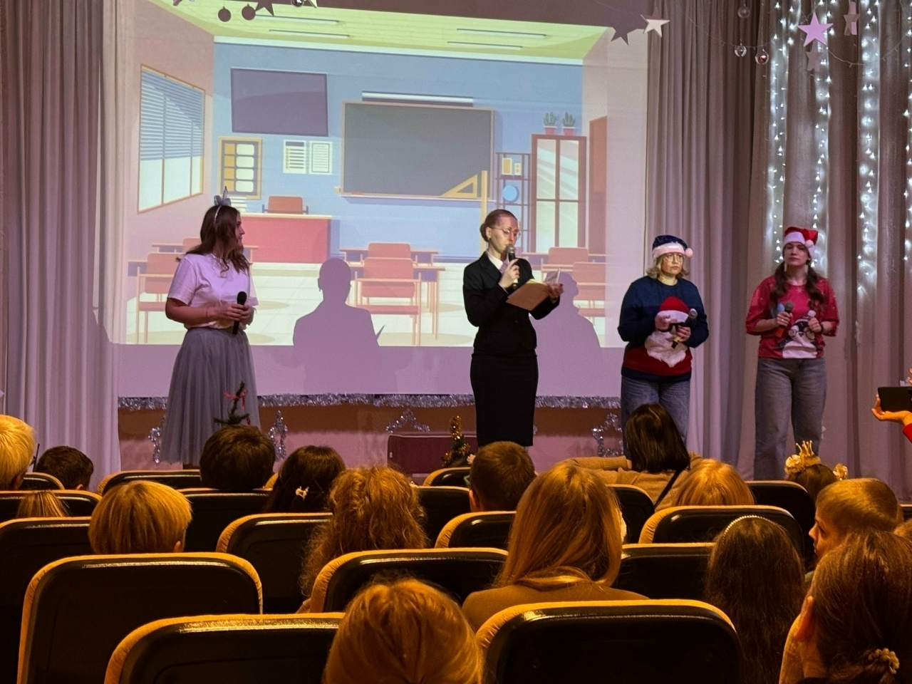Для наших любимых гостей были организованы тематические мастер-классы и новогоднее интерактивное представление «В поисках потерянного времени». Его подготовили и сыграли в нём ребята из Совета молодых специалистов нашей библиотеки. Представление, в котором сестрам Маше и Даше нужно было выполнить все свои новогодние обещания, было интерактивным, и гости смогли потанцевать, сделать зарядку, поиграть с псом Шариком и котом Мурзиком, после чего получили поздравления от Деда Мороза и Снегурочки.