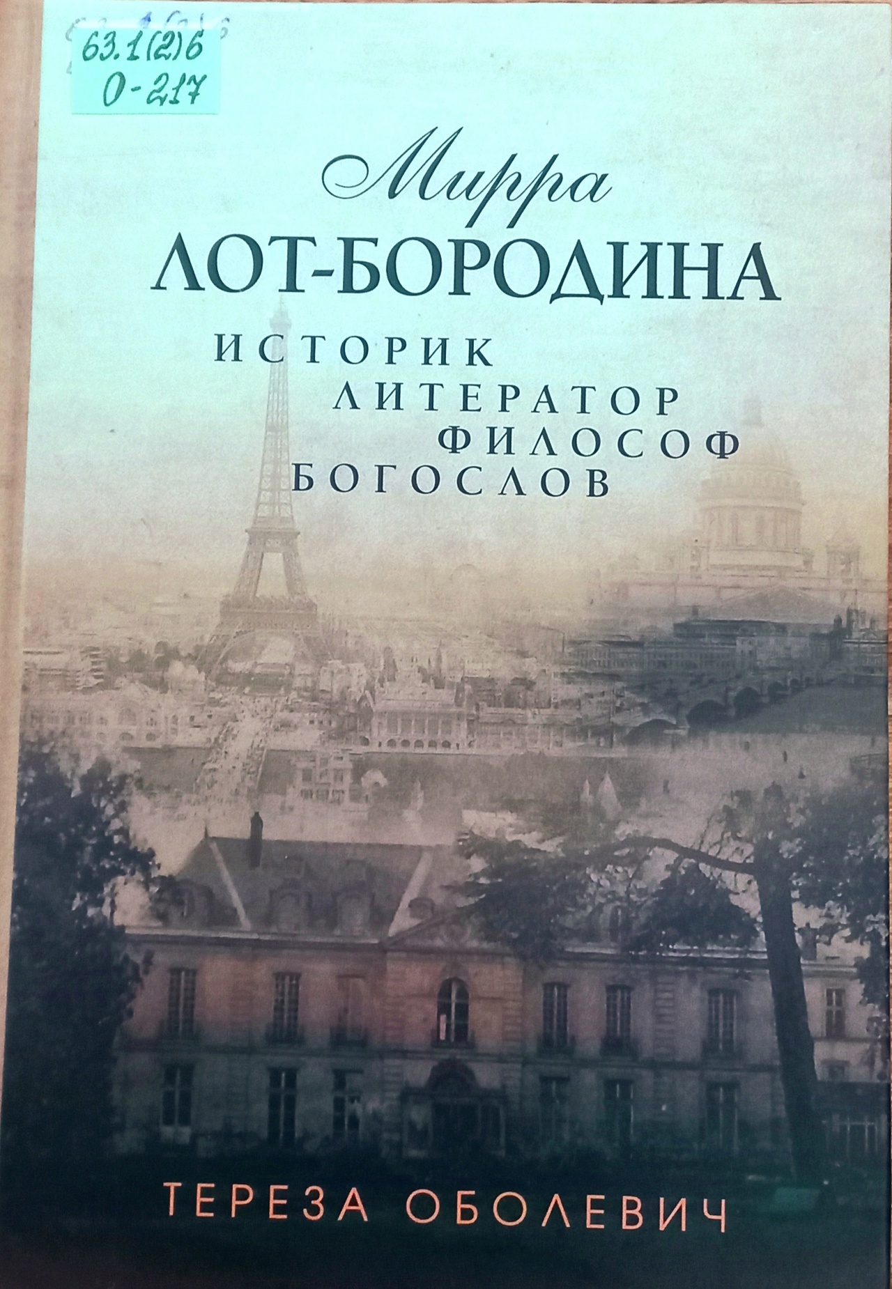 7. Оболевич Тереза. Мирра Лот-Бородина. Историк, литератор, философ, богослов / редактор Е. Твердислова. – Санкт-Петербург : Нестор-История, 2020. – 352 с. – ISBN 978-5-4469-1702-7. – Текст : непосредственный.