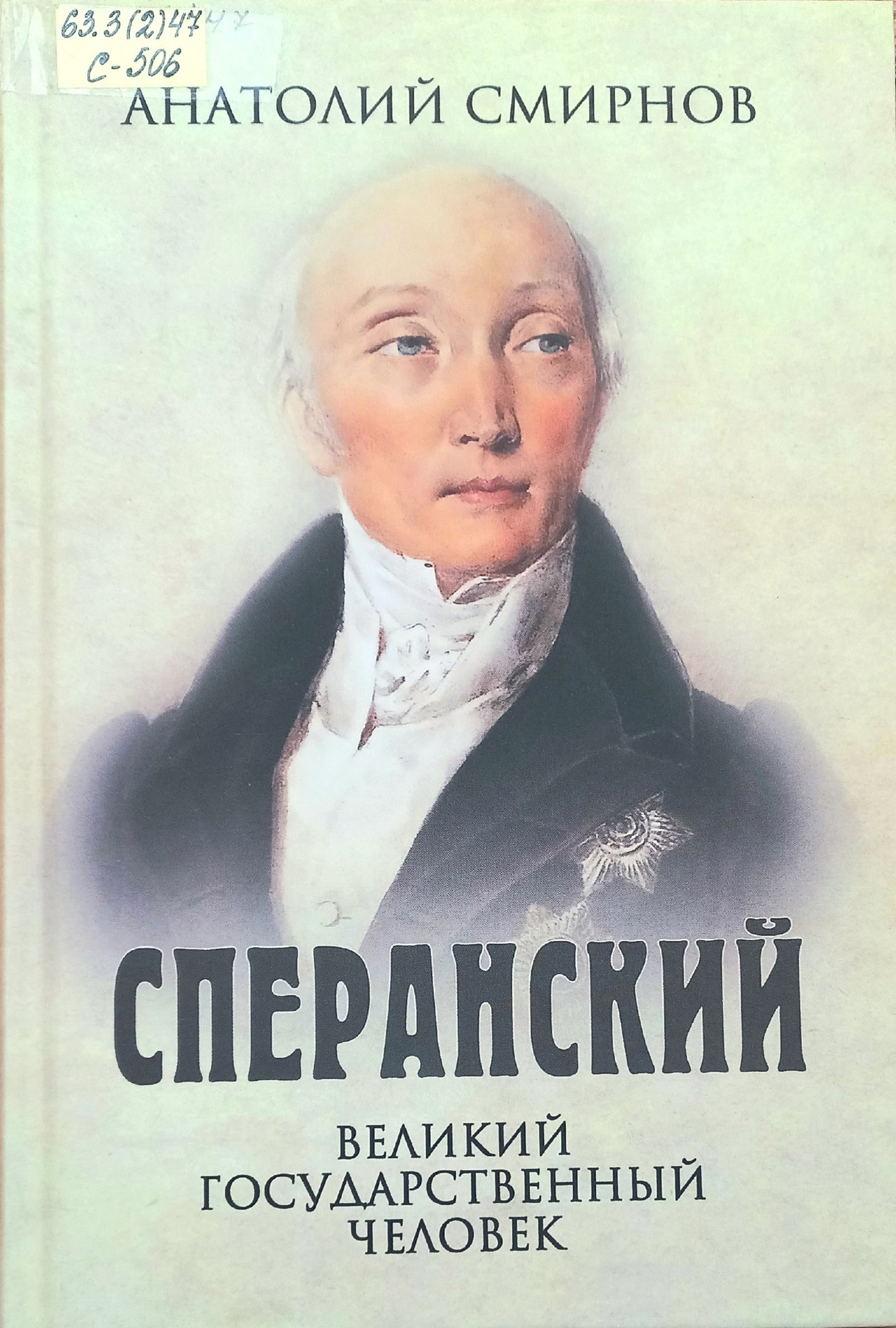 1. Смирнов, А. Ф. Сперанский. Великий государственный человек /А. Ф. Смирнов. – Москва : Вече, 2022. – 464 с. – (Лучшие биографии). – ISBN 978-5-4484-36352-9. – Текст : непосредственный.