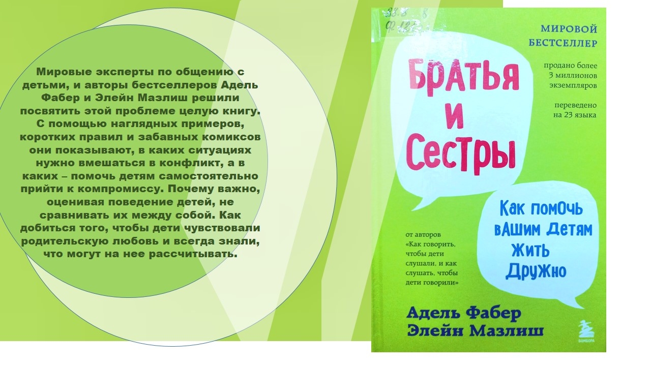 Фабер, Адель. Братья и сестры. Как помочь вашим детям жить дружно / Адель Фабер, Элейн Мазлиш ; [перевод с английского Т. Новиковой]. – Москва : Эксмо, 2025. – 320 с. – ISBN 978-5-04-154841-4. – Текст : непосредственный.
