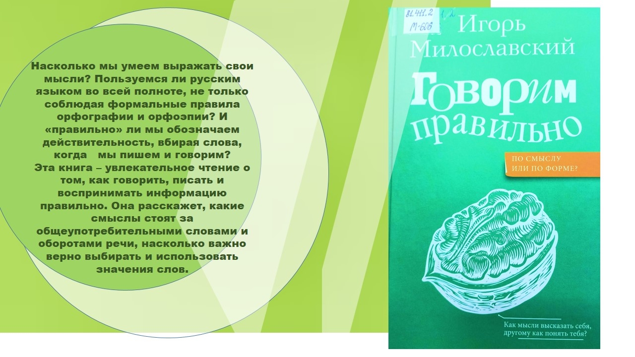 Милославский, И. Г. Говорим правильно : по смыслу или по форме? / И. Г. Милославский. – Москва : Издательство АСТ, 2024. – 320 с. – (Говорим по-русски правильно). – ISBN 978-5-17-163668-5. – Текст : непосредственный.