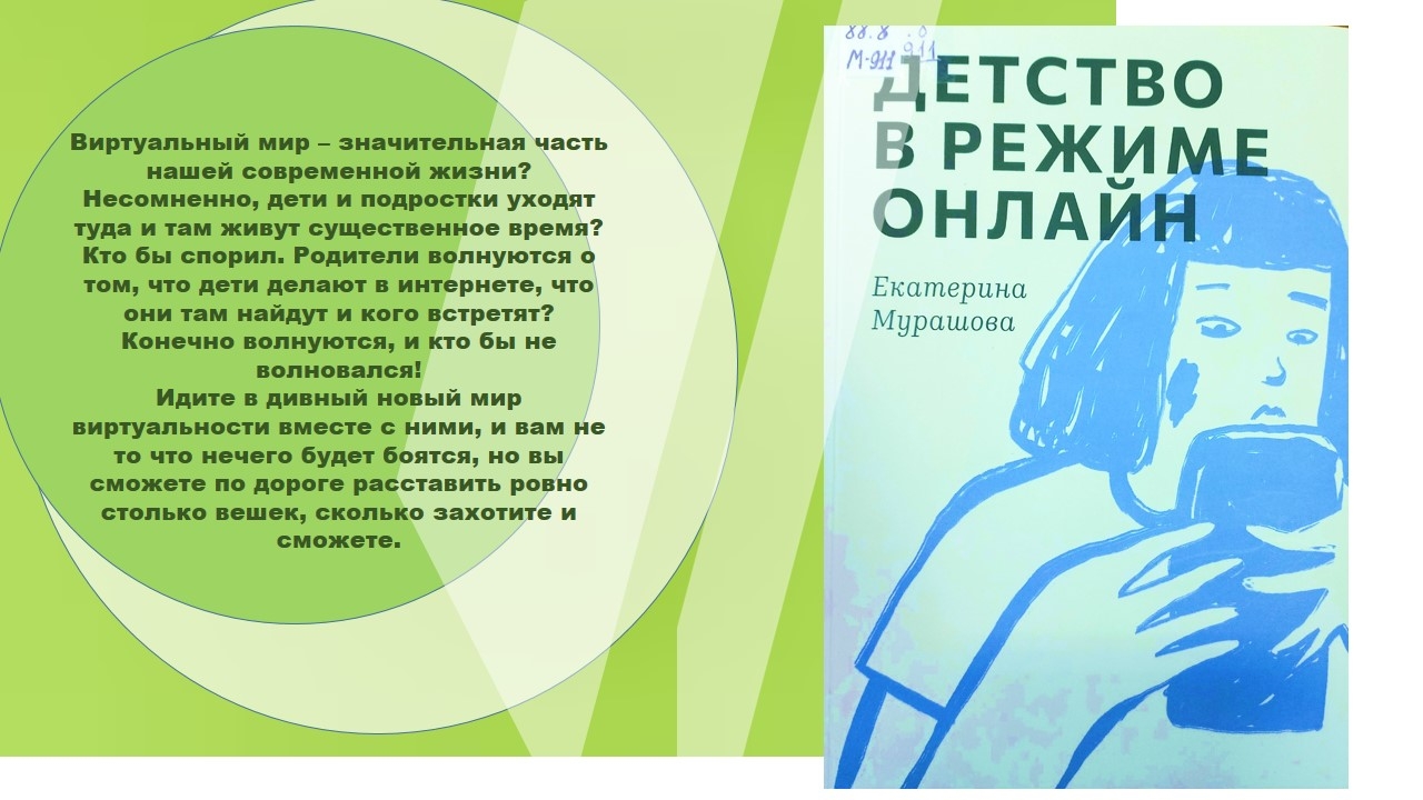 Мурашова, Екатерина. Детство в режиме онлайн / Екатерина Мурашова. – Москва : Самокат, 2024. – 208 с. – (Самокат для родителей). – ISBN 978-5-00167-600-3. – Текст : непосредственный.