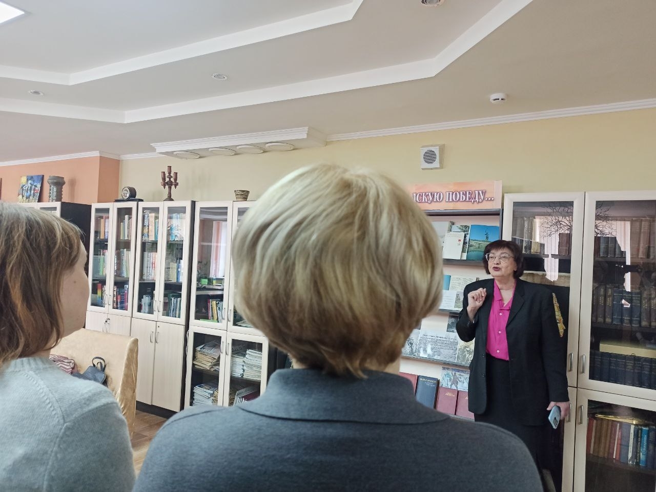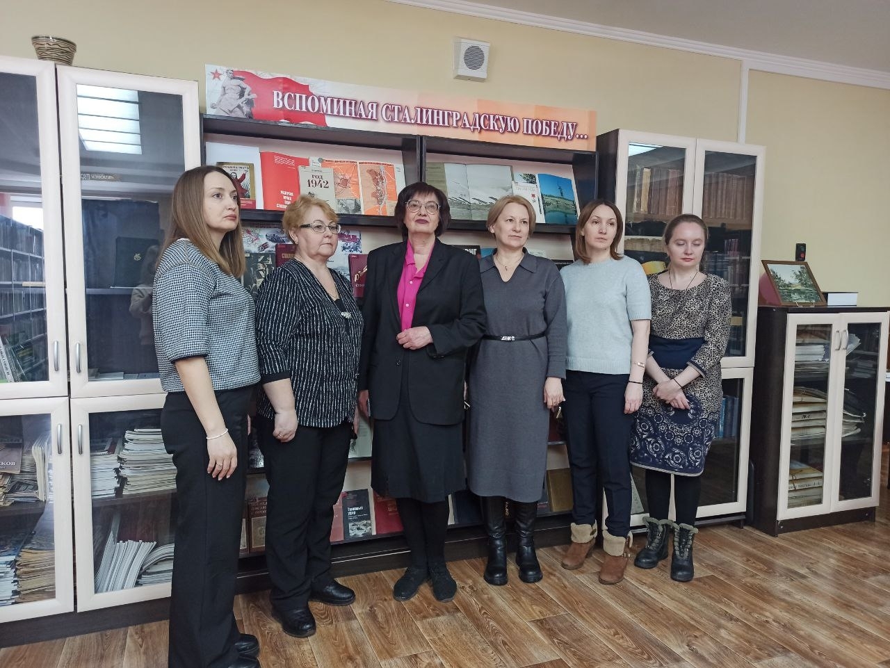 На это раз наши гости проявили интерес к выставке-просмотру «Вспоминая Сталинградскую Победу…», посвященной Сталинградской битве. Экспозиция работает в отделе гуманитарной литературы.