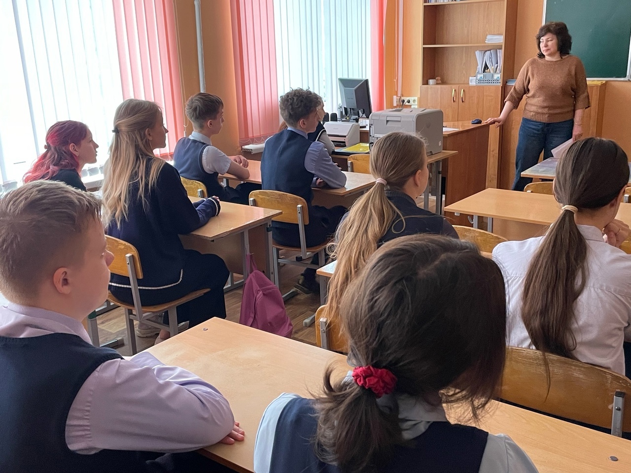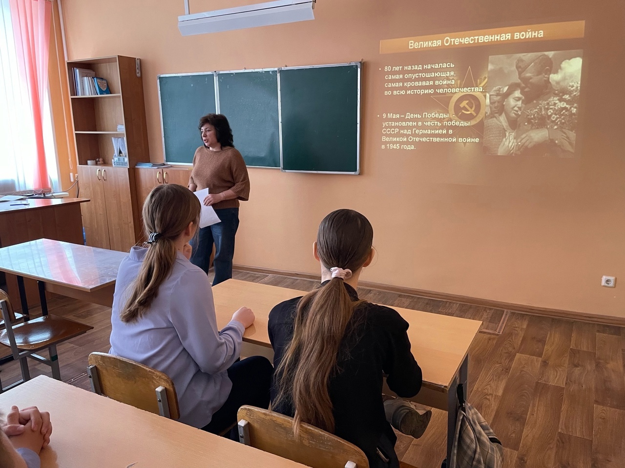 12 мая сотрудники отдела периодических изданий Пушкинки провели для семиклассников школы № 16 патриотический час «Немеркнущий подвиг народа», посвященный 80-летию Великой Победы.
