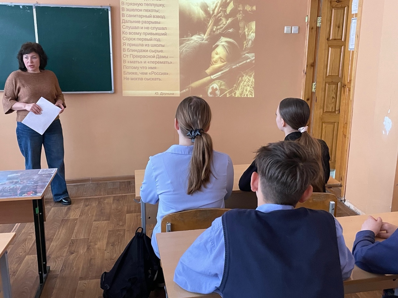 Для учащихся прозвучали стихи и песни известных поэтов Юлии Друниной, Александра Суркова, Константина Симонова и др.