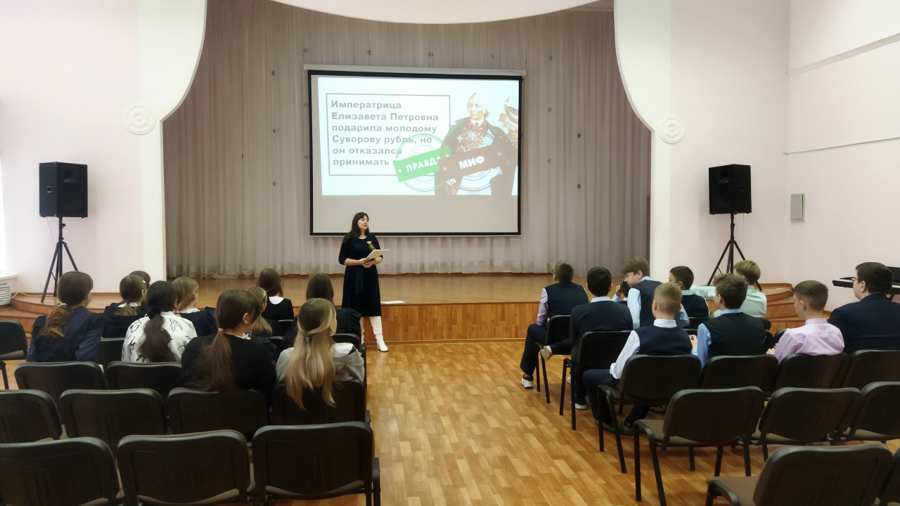 После познавательной лекции последовала интерактивная игра «Правда или миф», которая позволила участникам проверить свои знания, а также развеять некоторые распространенные заблуждения, связанные с личностью А. В. Суворова. В ходе игры ребята восстанавливали пропущенные слова в высказываниях великого полководца и пытались разгадать послание, оставленное в виде шифра.