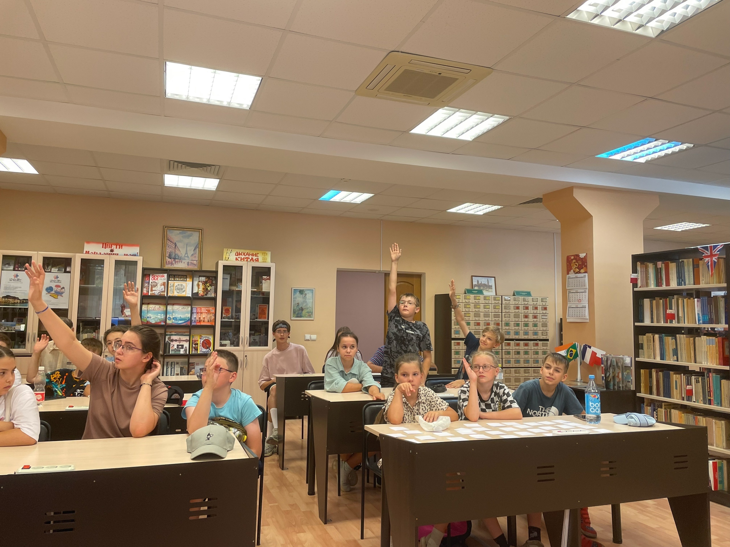 4 августа сотрудники отдела литературы на иностранных языках провели для ребят из парка приключений «Энерджи» познавательный час. Библиотекари подготовили ряд лингвострановедческих викторин на знание языков, географии, истории, символов разных стран.
