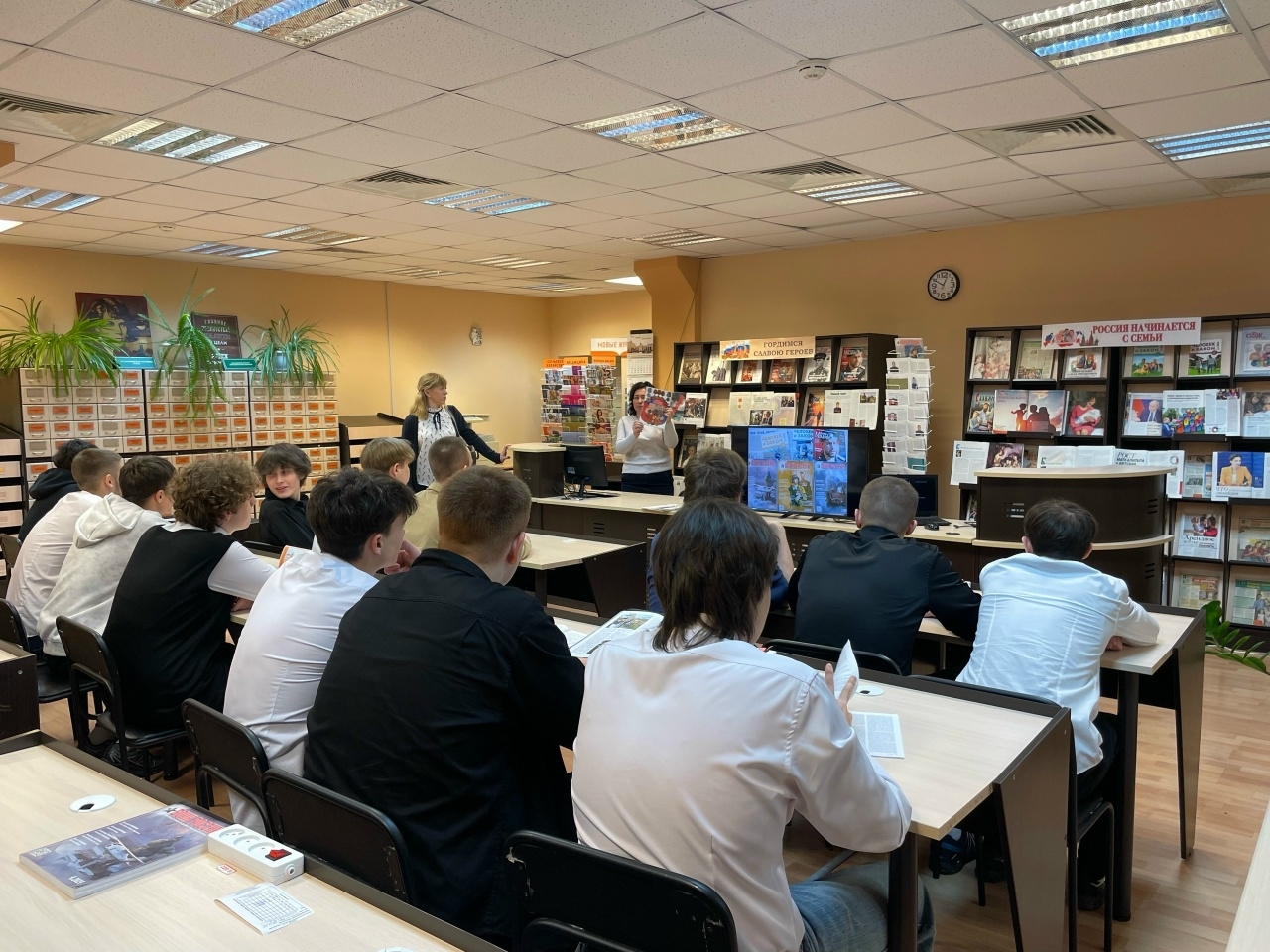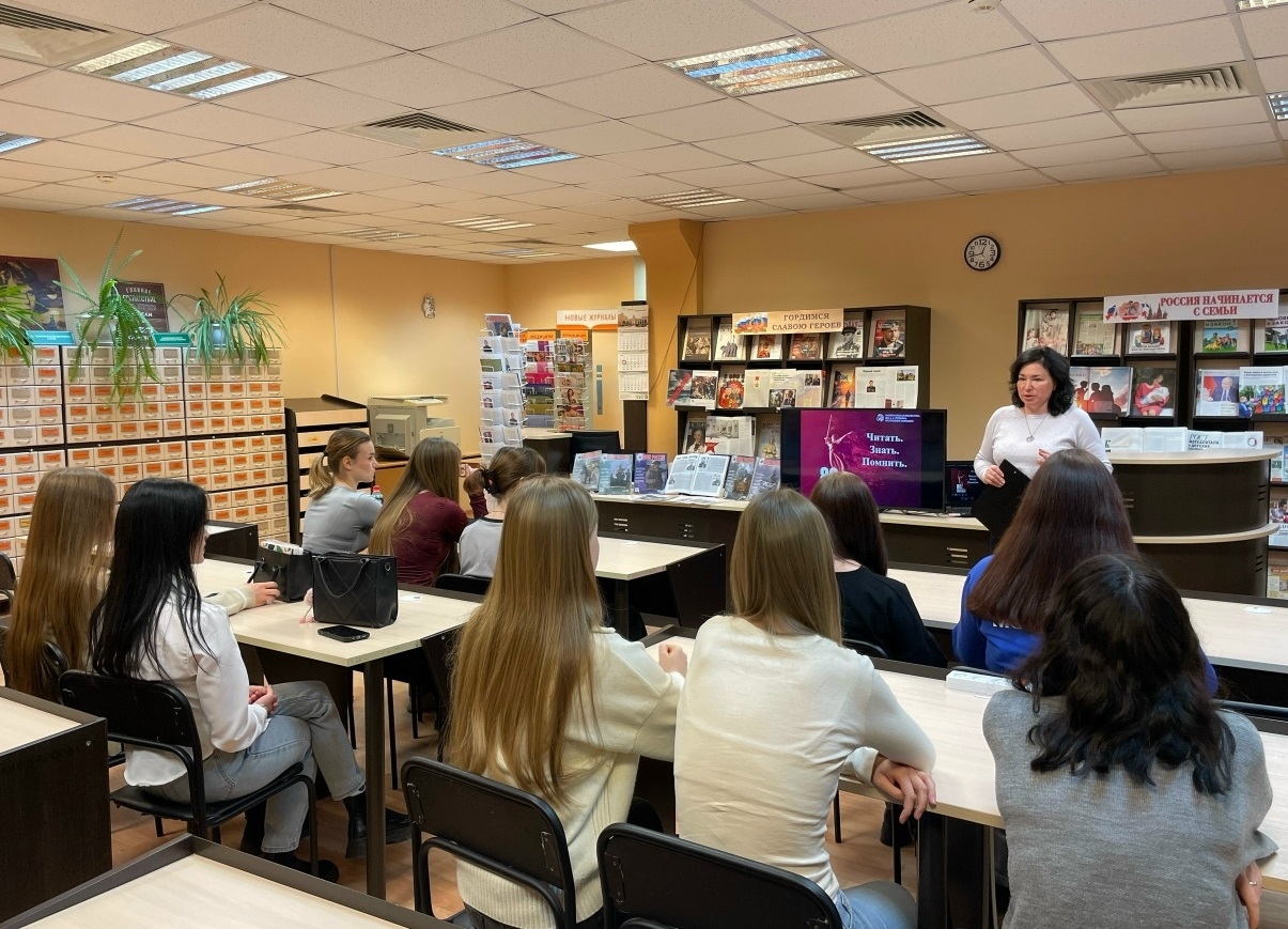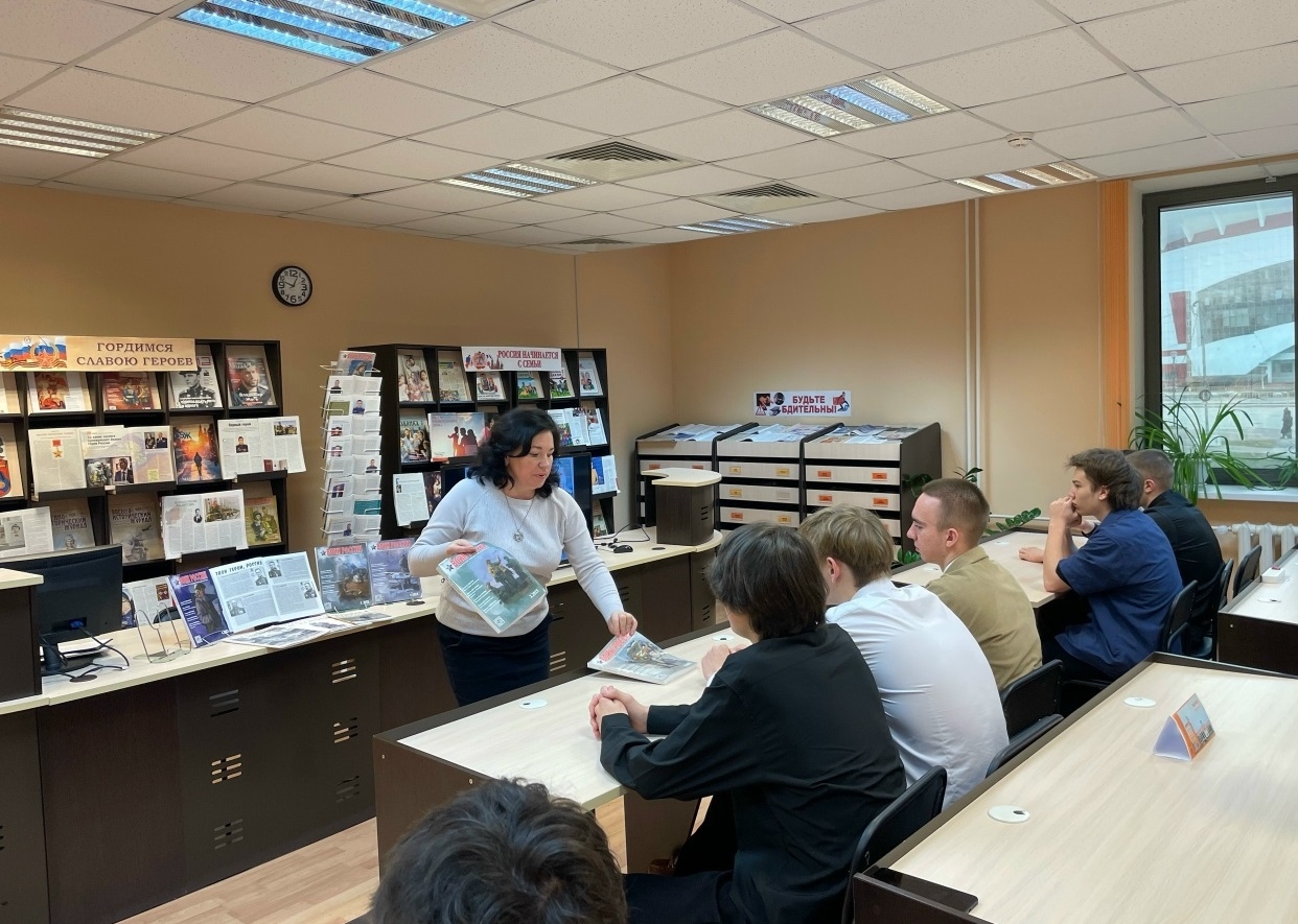 Библиотекари рассказали студентам о героических событиях военной истории России, об испытаниях, выпавших на долю нашего народа и вооруженных сил при защите рубежей страны. Учащиеся познакомились с теми, чей подвиг – пример для всех россиян; среди них и герои нашего времени – участники специальной военной операции. В ходе встречи были продемонстрированы тематические журналы «Воин России», «Военно-исторический журнал», «Историк», «Родина» и др.