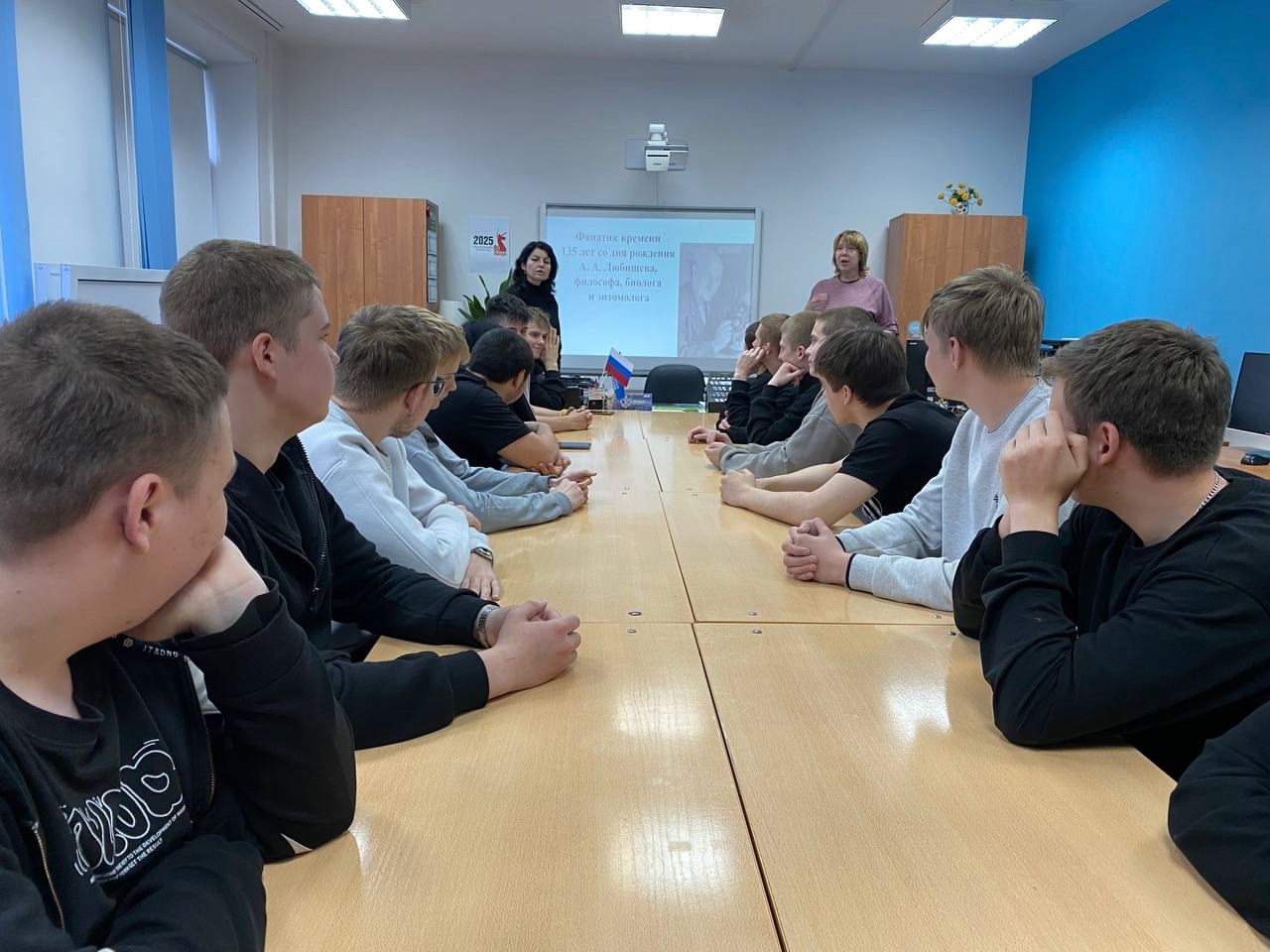 16 мая для студентов Саранского электромеханического колледжа сотрудники отдела естественнонаучной и производственной литературы Пушкинки провели познавательный час «Фанатик времени», посвященный научной и творческой жизни А. А. Любищева.