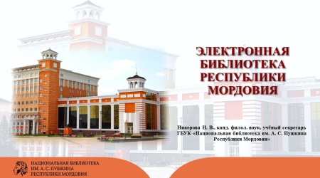 Н. В. Никерова, ученый секретарь Пушкинки, с приветственным словом обратилась ко всем присутствующим, рассказала об участии сотрудников библиотеки в проекте, познакомила аудиторию с Электронной библиотекой Республики Мордовия, разнообразными коллекциями, входящими в её состав.