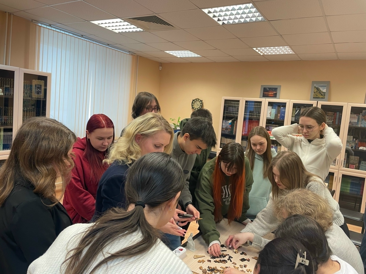 Активное вовлечение молодежи в процесс происходило через интерактивную викторину, посвященную играм пушкинской поры и фильмам по мотивам его произведений. Также участники работали вместе над сложной задачей – восстановить картину, составленную из множества фрагментов-героев, которые знакомы с детства каждому: Русалка, Золотая рыбка, Золотой петушок, Поп и многие другие.