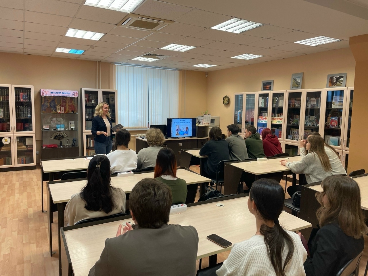 6 февраля сотрудники отдела литературы на иностранных языках провели для студентов Историко-социологического института МГУ им. Н. П. Огарёва мероприятие, которое помогло глубже понять удивительный мир творчества Александра Сергеевича Пушкина. Благодаря современным технологиям и искусственному интеллекту учащиеся узнали, каким образом нейросеть видит знаменитых персонажей и самого поэта.