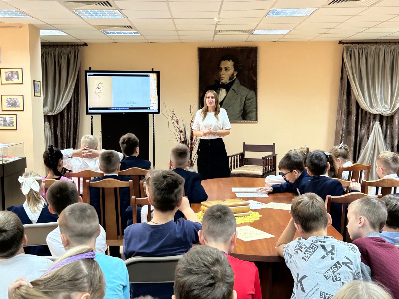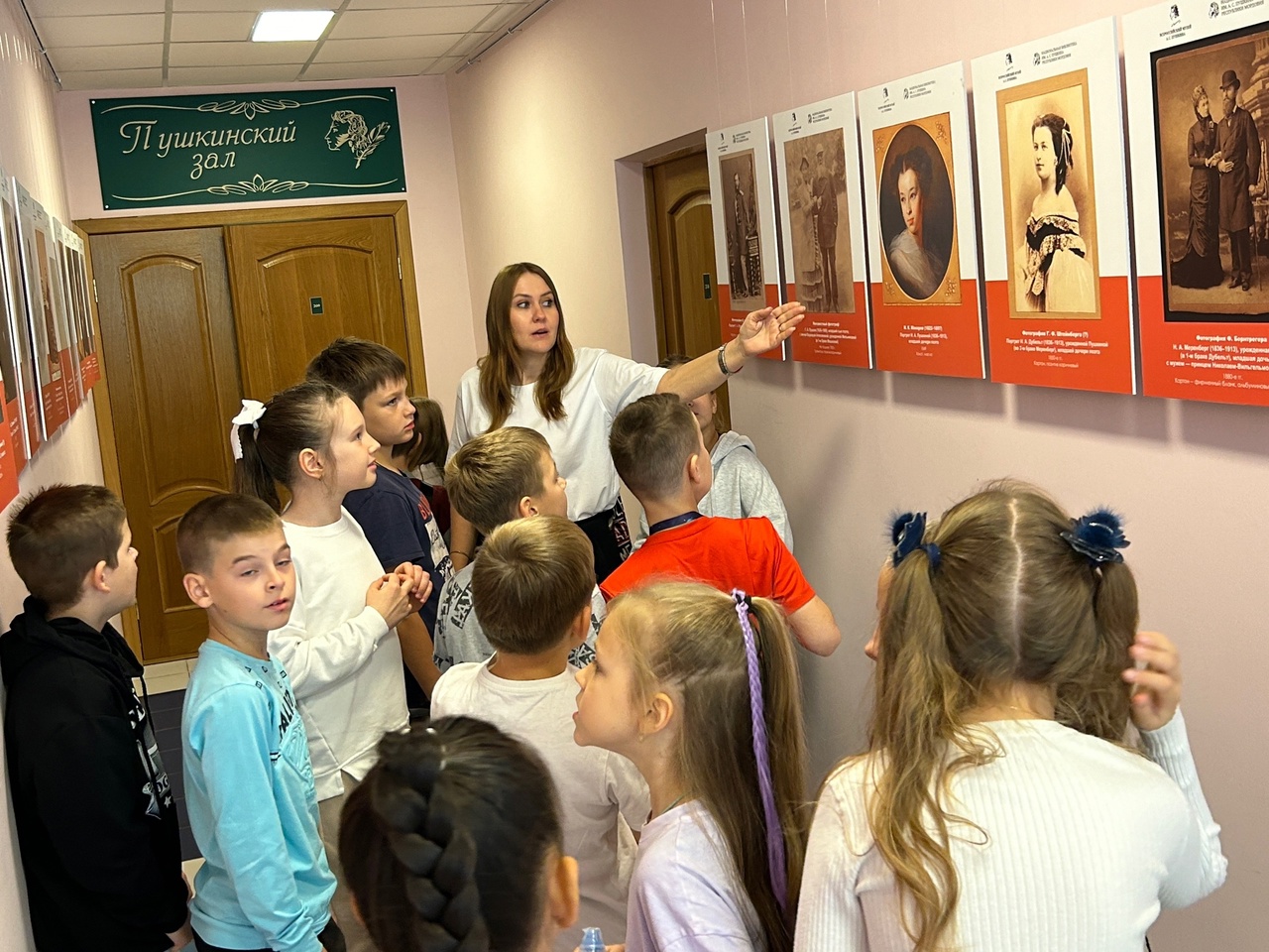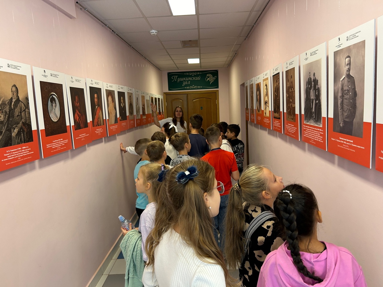 Состоялась экскурсия по выставке «Преданья русского семейства», посвященной истории рода Пушкиных и их родственников Ганнибалов. С помощью цифровых копий произведений живописи и графики, редких фотографий поэта и его родственников учащиеся узнали интересные факты из истории знаменитой семьи.
