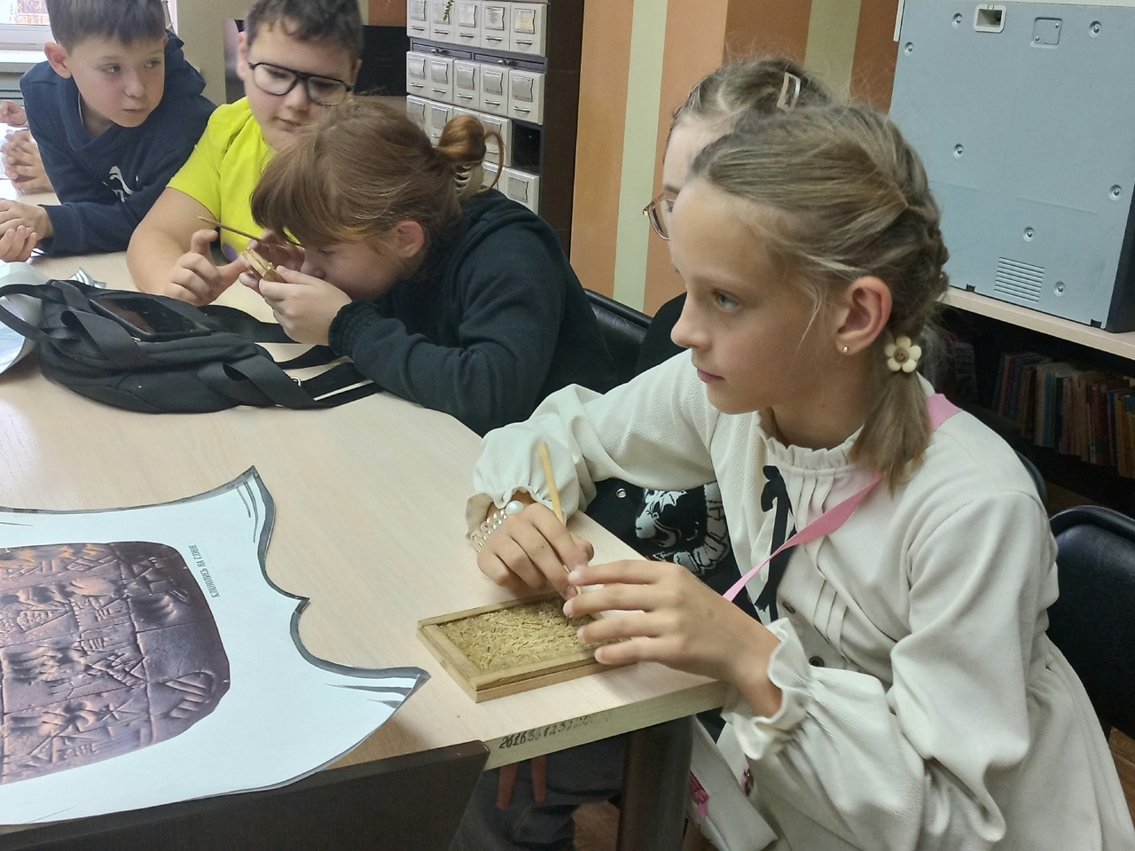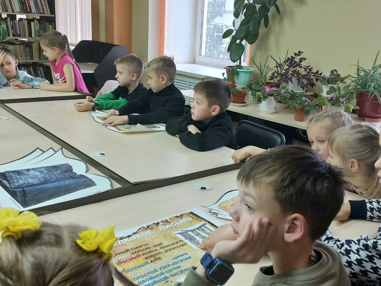 28 октября сразу три класса из школы № 39 посетили интерактивный урок по истории создания письменности и книгопечатания, прошедший в отделе гуманитарной литературы.