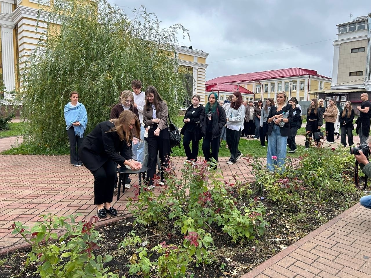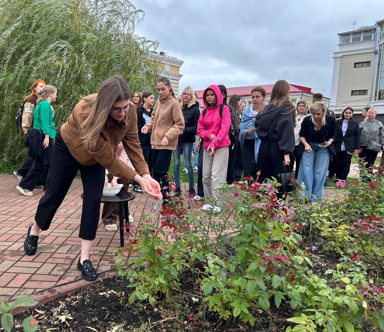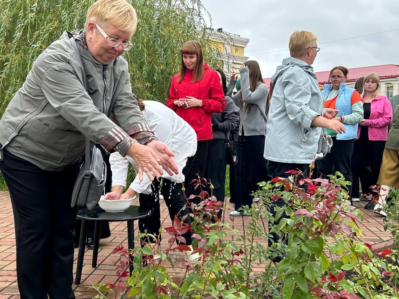 Участники акции набирают воду из чаши в сложенные лодочкой ладони и поливают растения из рук. Этот жест символизирует нашу общую скорбь и сострадание к жертвам террористических актов, а также нашу решимость противостоять этой угрозе. Вода, как символ жизни, становится знаком памяти о тех, чью жизнь отнял терроризм.